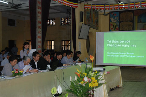 Phật tử Diệu Thái – Nguyễn Tường Cẩm Vân, Phó Chủ nhiệm CLB Thanh thiếu niên Phật tử Quán Sứ trình bày tham luận "Trí thức trẻ với Phật giáo ngày nay".