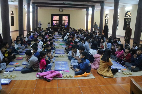 Ngoài những chia sẻ của Đai đức trụ trì các bạn nhỏ còn được tham gia thời khóa tụng “Kinh Biết Ơn và Kinh Phước Đức” tham gia tập múa hát, học làm ảo thuật với sự dẫn dắt của Phật tử Hiểu Linh, ảo thuật gia Nguyễn Hải Hưng và các bạn thanh niên Phật tử Chùa Hòa Phúc