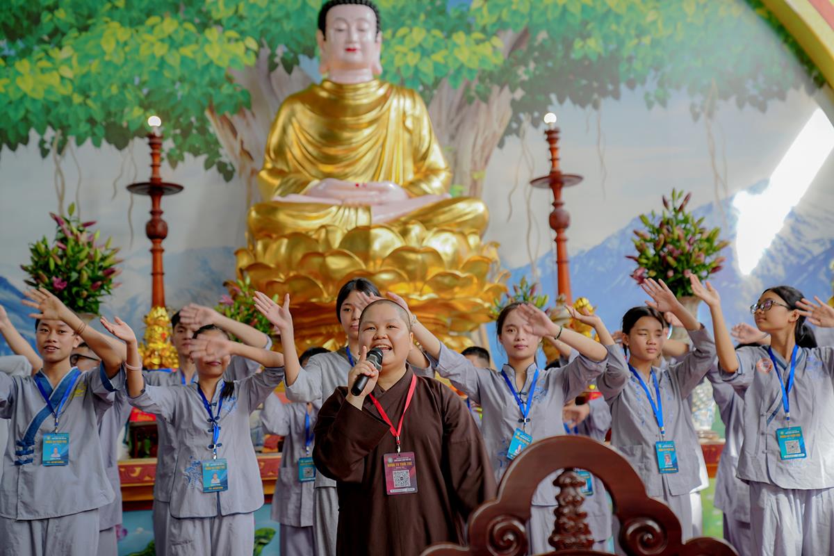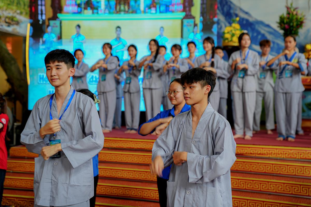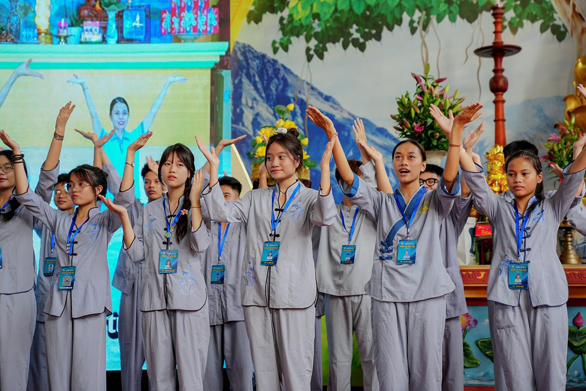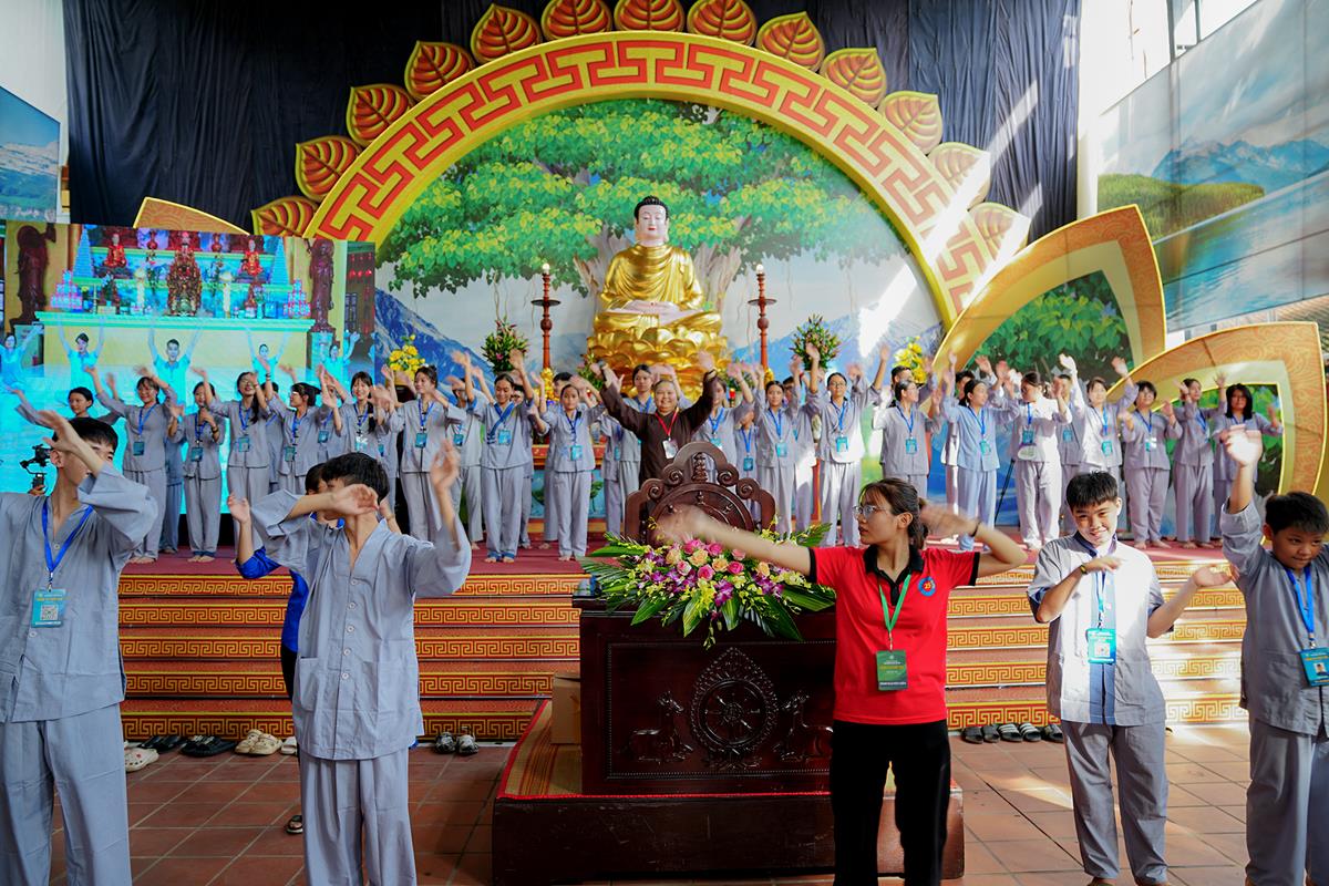 Trước khi kết thúc buổi chia sẻ, các khóa sinh đã có buổi tập múa đồng diễn đầy sôi nổi dưới sự hướng dẫn của sư cô Anh Nghiêm, được cùng nhau biểu diễn và đón nhận những món quà nhỏ khích lệ, khiến các bạn đã dần bớt đi sự rụt rè ban đầu.