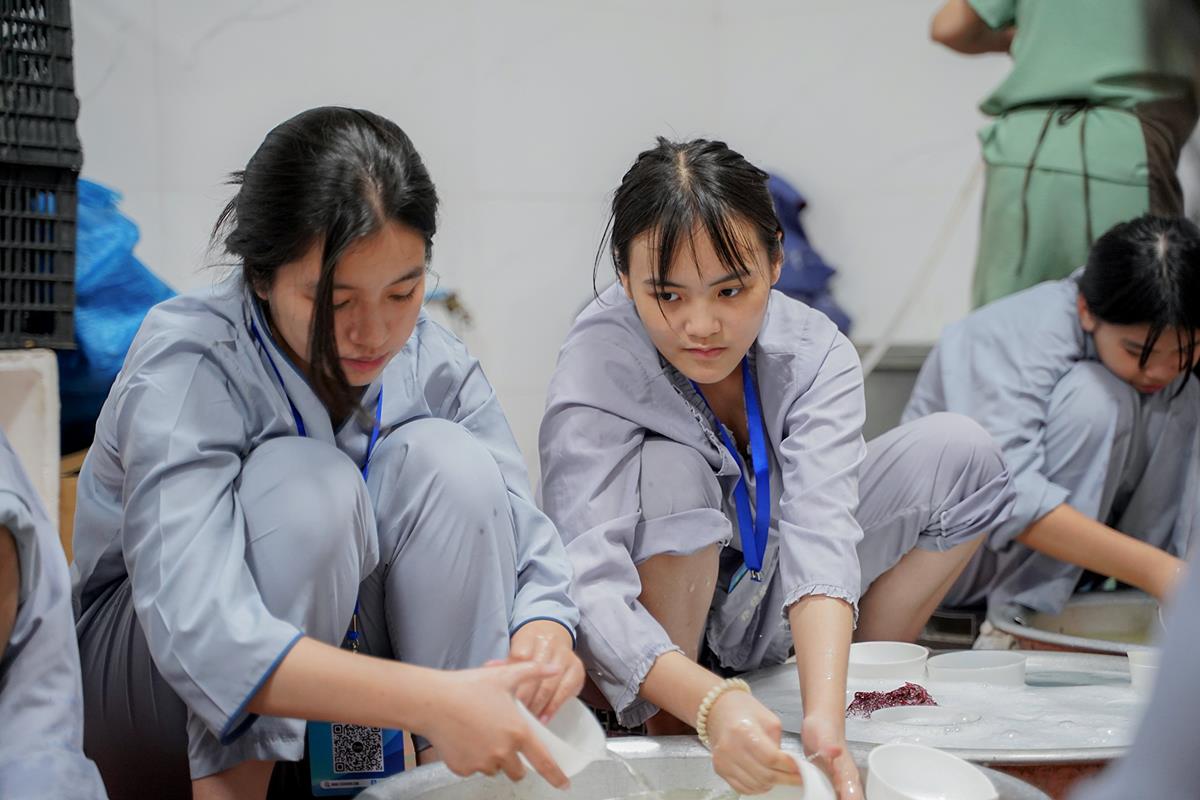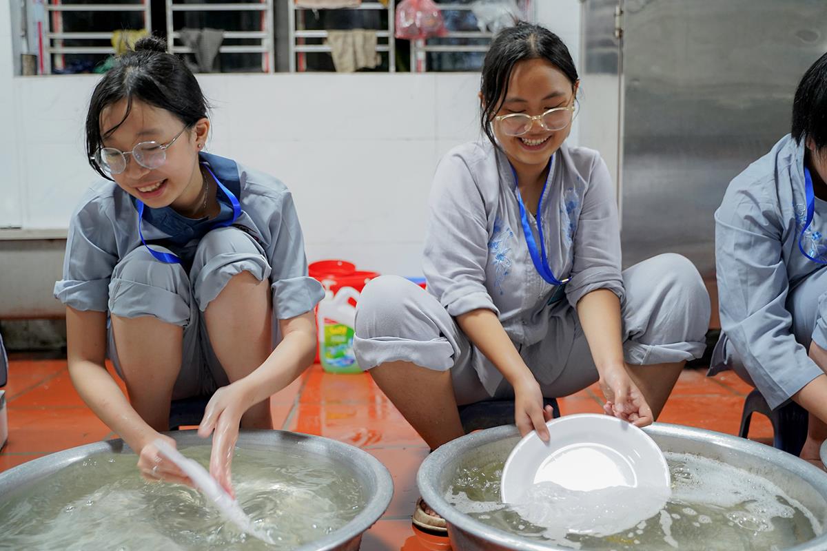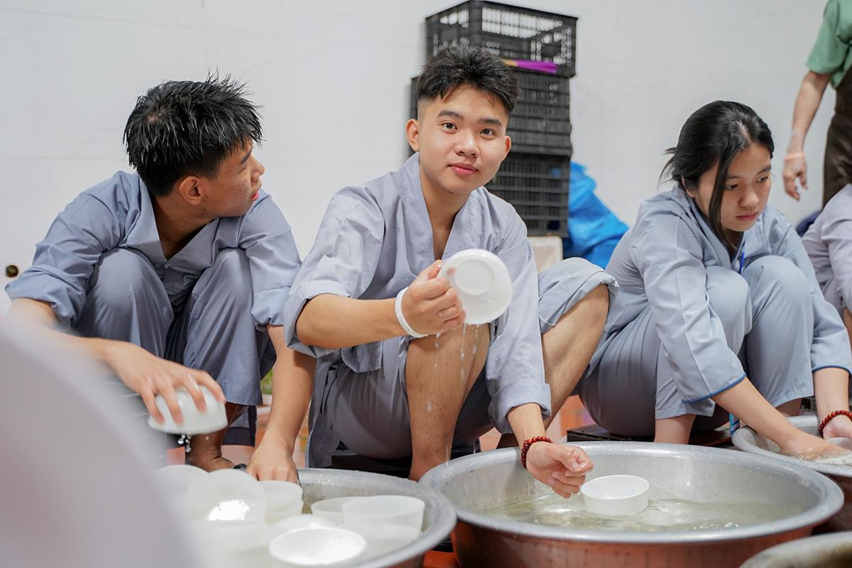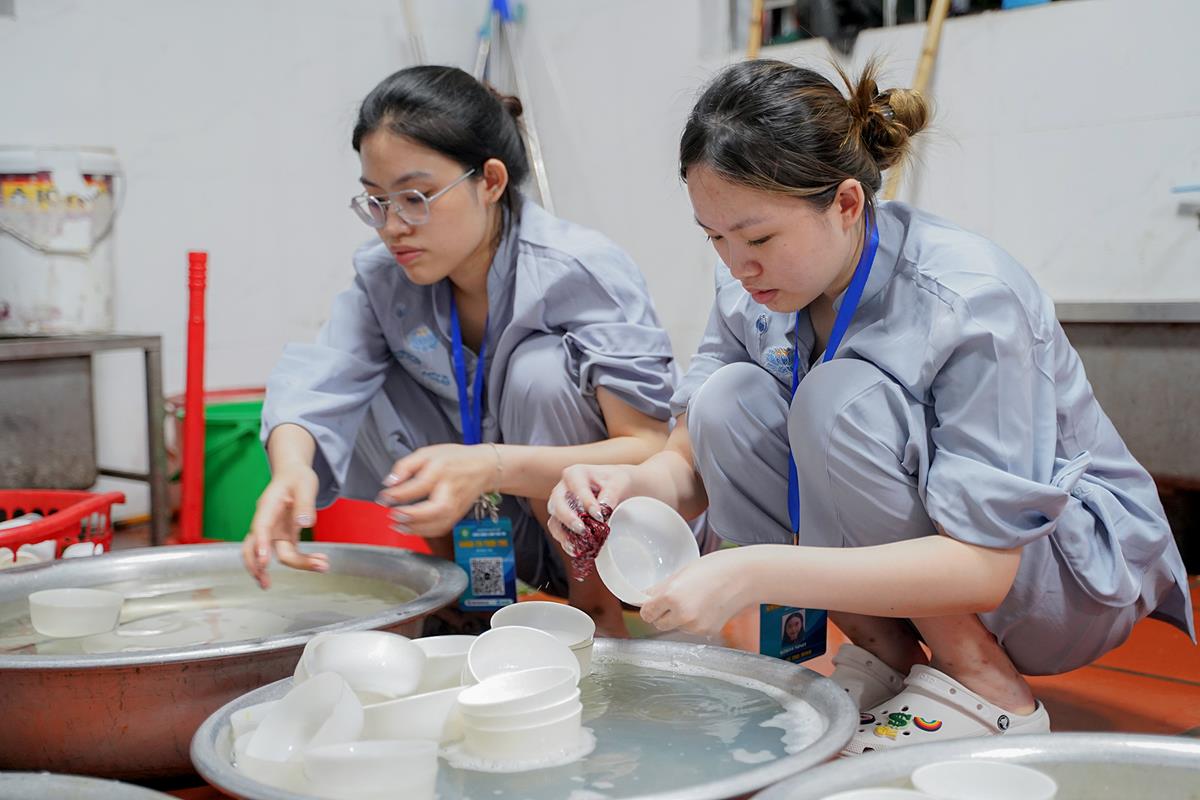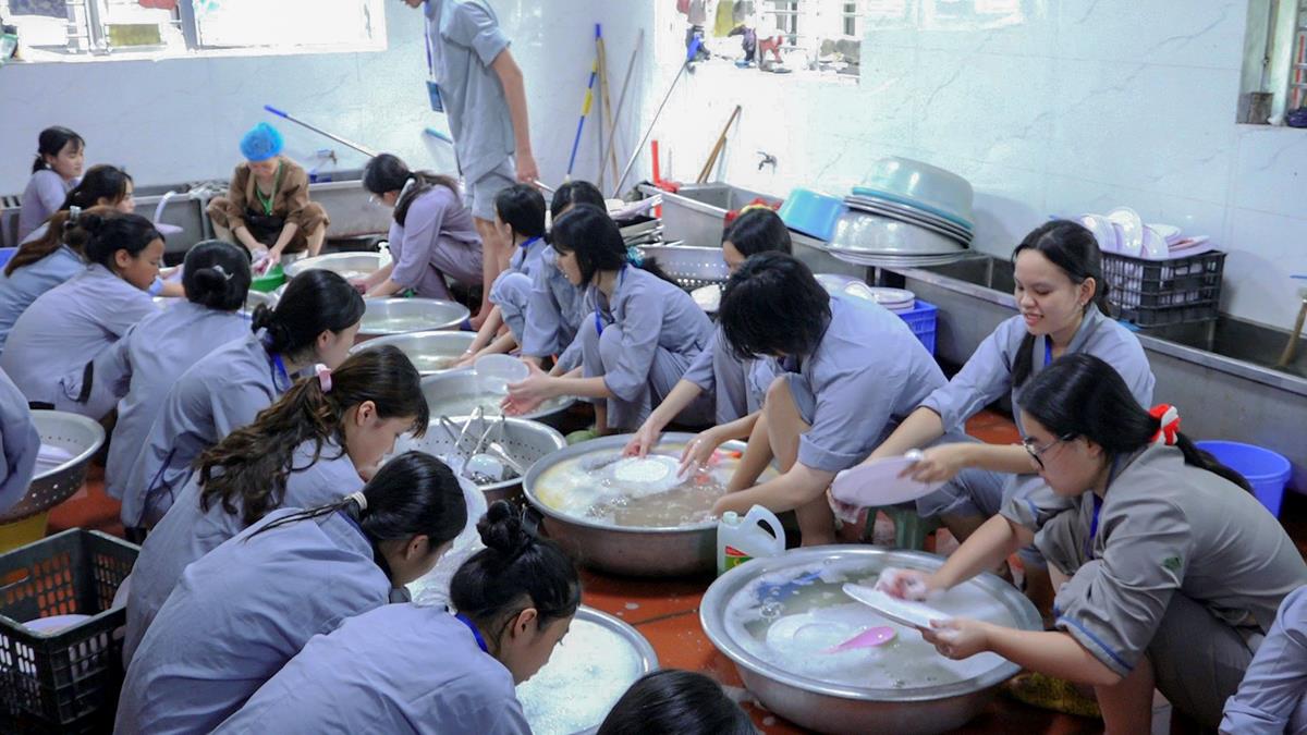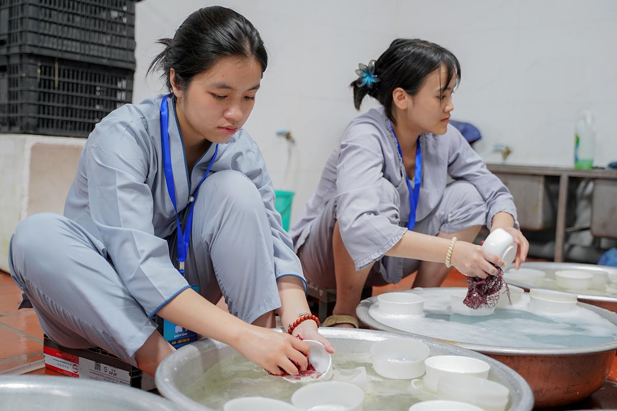 Buổi trưa, các bạn đã có bữa ăn chay đầu tiên đầy lạ lẫm, lần đầu trải nghiệm nghi thức cúng Quá Đường của thiền môn, dùng cơm trong chính niệm, học cách biết ơn tới những người đã làm ra bữa cơm cho mình. Những món ăn đầy hấp dẫn, phù hợp với sở thích, đáp ứng yêu cầu vệ sinh an toàn thực phẩm nghiêm ngặt đã khiến các bạn có một trải nghiệm ăn chay thú vị.