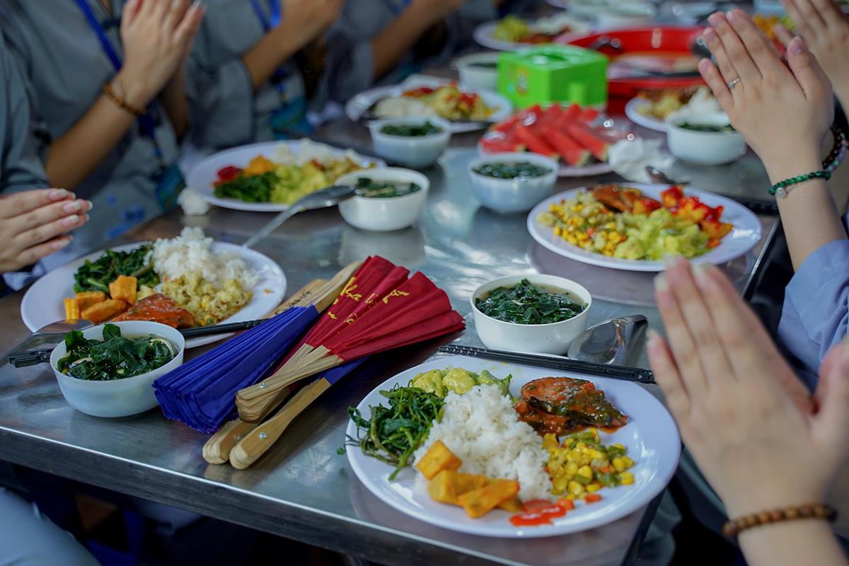 Bữa cơm chay buổi tối của các khóa sinh