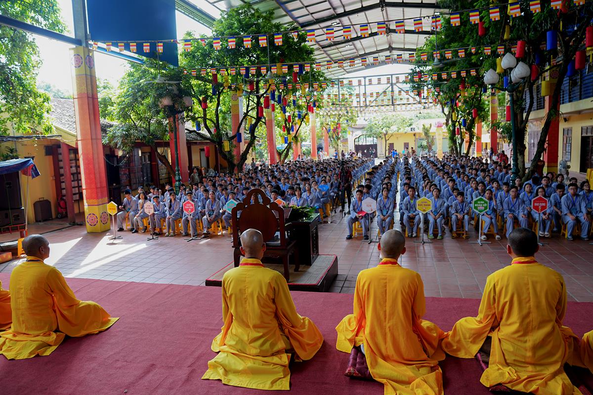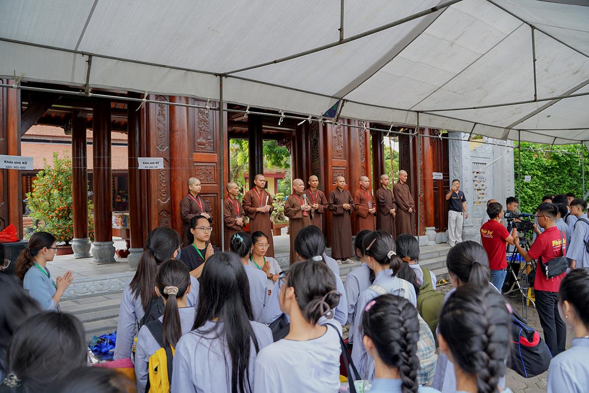 Đúng 7h00, trước cổng tam quan chùa Bằng, Hòa thượng trụ trì Thích Bảo Nghiêm cùng chư Tôn đức Tăng Ni trong Ban tổ chức đã có lời chào tới các bậc phụ huynh và các khóa sinh. Hòa thượng trụ trì cảm ơn sự tin tưởng, ủng hộ của các vị dành cho khóa tu tại chùa Bằng trong suốt những năm qua. Đồng thời Hòa thượng mong trong 6 ngày 5 đêm diễn ra khóa tu, Hòa thượng cùng quý chư Tăng Ni sẽ là những người cha người mẹ, người thầy, người anh, chăm lo và quan tâm tới các bạn trẻ, giúp các bạn có một trải nghiệm tu học vui vẻ, ý nghĩa và đáng nhớ.