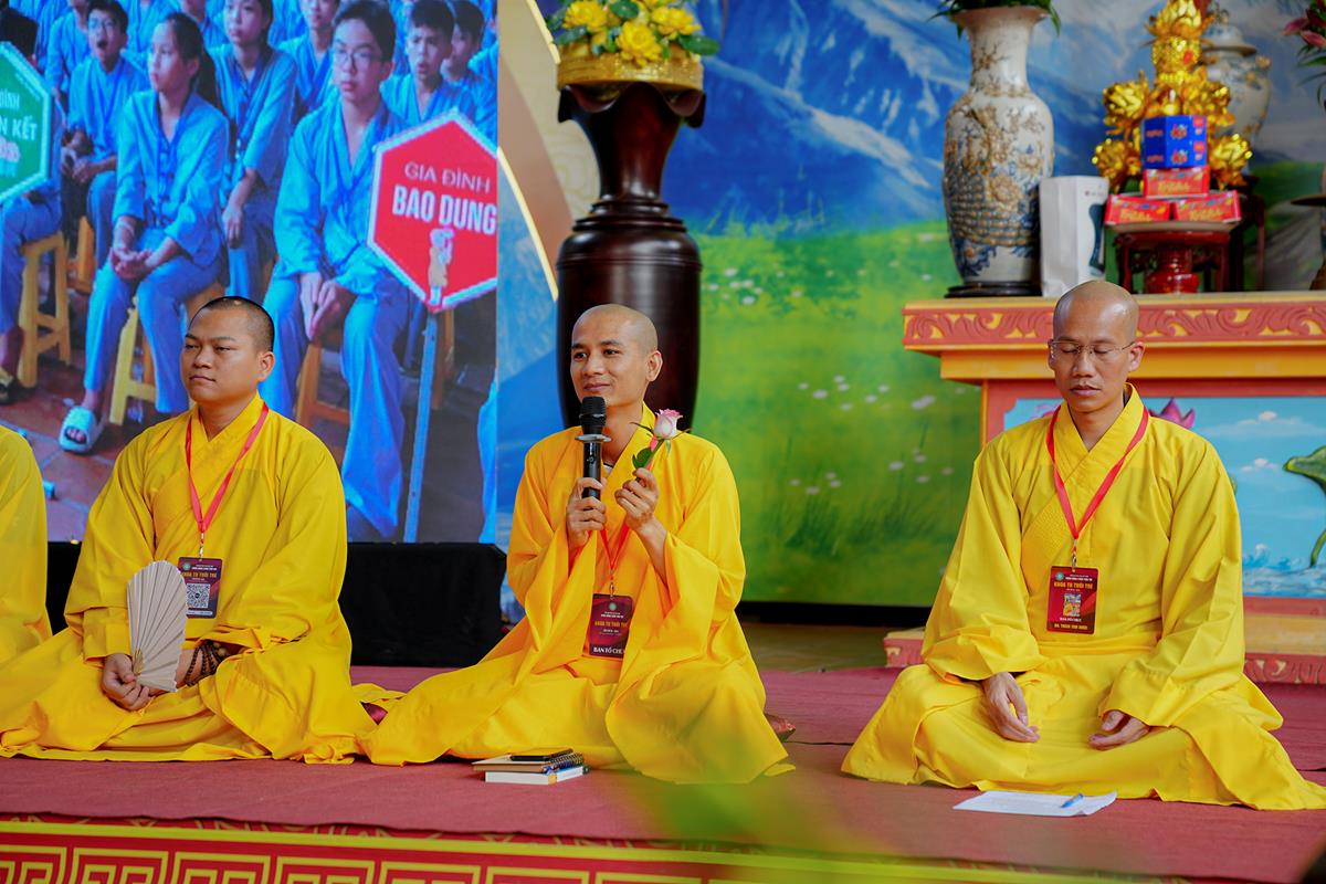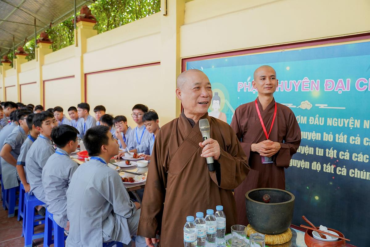 Cuối buổi là lời chia sẻ thân thương từ Hòa thượng trụ trì động viên, khích lệ các bạn trẻ hãy để bản thân thả trôi đi những muộn phiền, những áp lực của cuộc sống học hành, thi cử, hãy để năng lượng vui vẻ lạc quan của tuổi trẻ đầy ắp trong khóa tu này. Hòa thượng bày tỏ: “Thầy nghe những lời chia sẻ của quý thầy từ đầu buổi đến giờ với các con mà thầy cũng muốn được sống lại những ngày tháng đó, nhưng tiếc rằng không còn được nữa. Vì vậy, Các con hãy sống thật thoải mái và vui vẻ đừng để bỏ phí thời gian này”.
