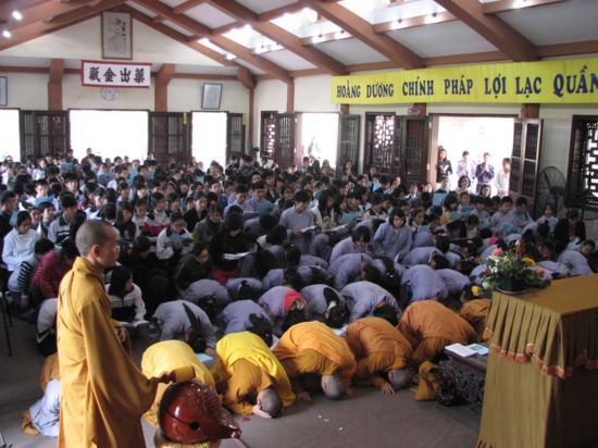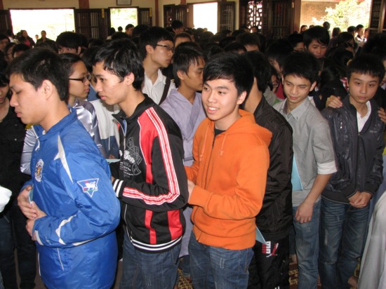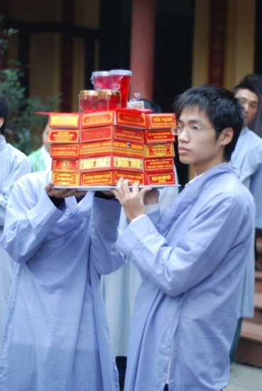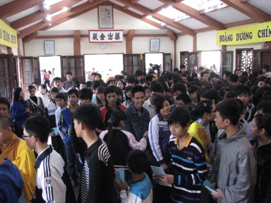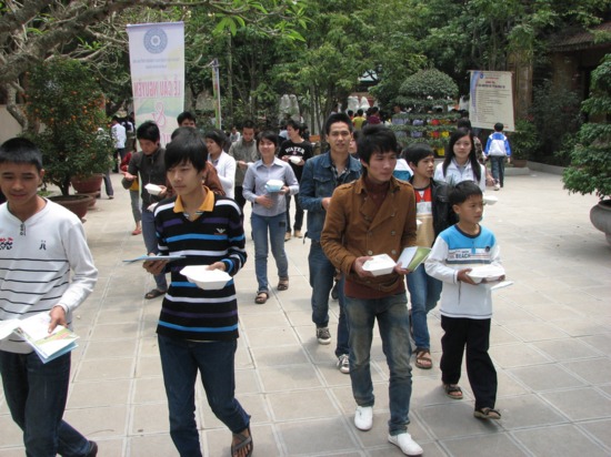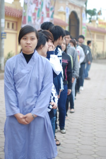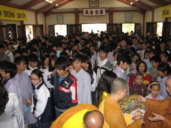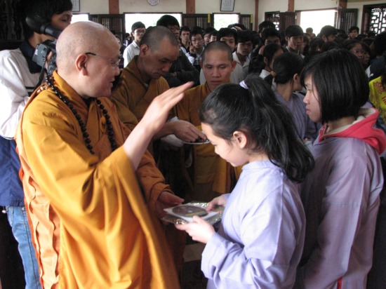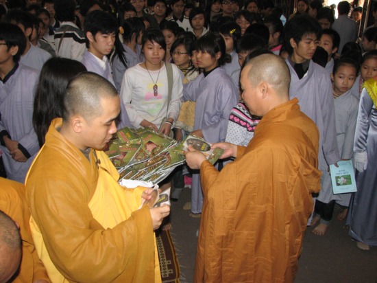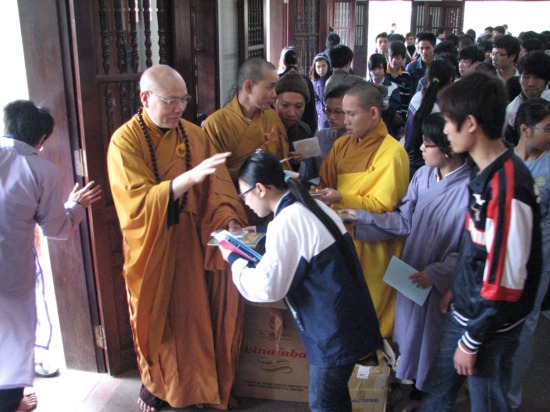 Xếp hàng nhận quà chúc phúc từ chư Tôn đức