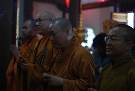 Chư Tôn đức trên đường quang lâm đền thờ Chu Văn An