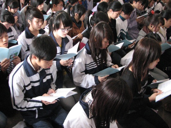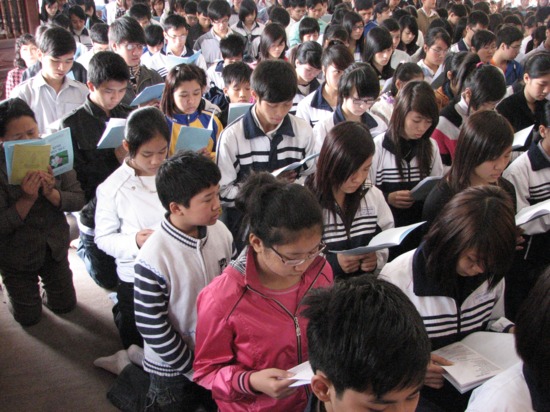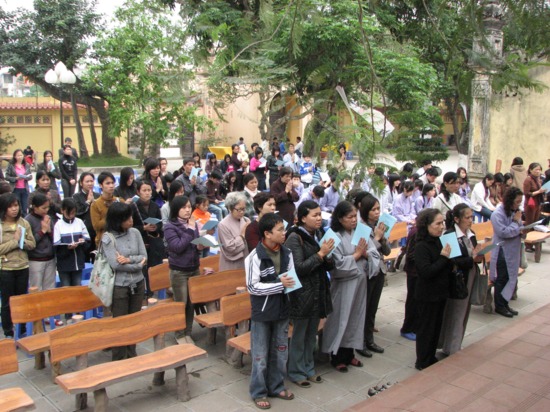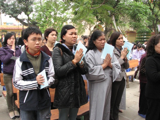 Thầy cô và các em học sinh thành tâm cầu nguyện