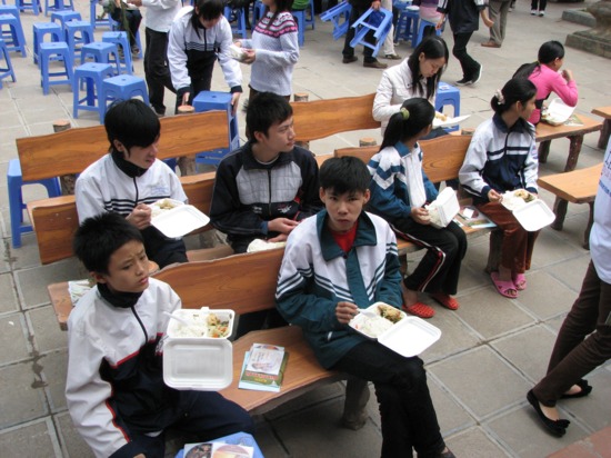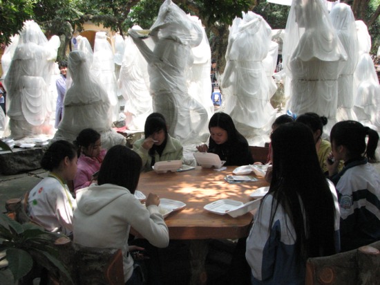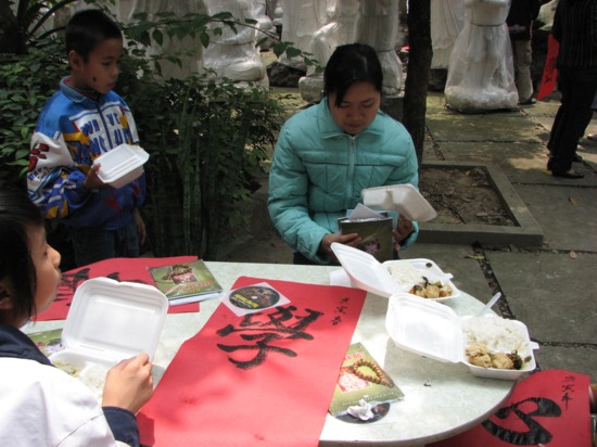 Ăn cơm chay bên cạnh tranh chữ vừa xin được