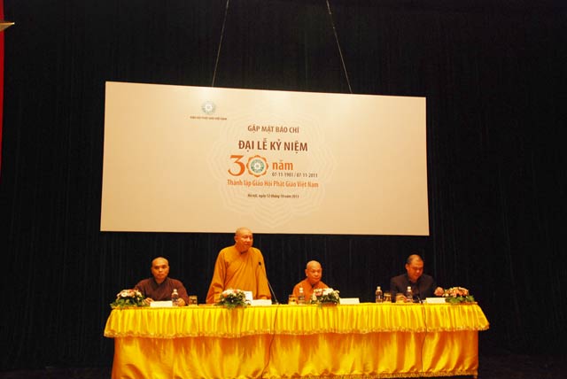 Phát biểu trả lời các phóng viên báo chí, TT Thích Gia Quang, ĐĐ Thích Minh Tiến đã nêu rõ định hướng phát triển của GHPGVN trong 30 năm qua, thể hiện truyền thống hộ quốc an dân, phụng sự Đạo pháp dân tộc, quan hệ giao lưu tốt với các nước trên thế giới. Tại buổi lễ kỷ niệm sẽ có Đại sư quán các nước tới tham dự. Dấu ấn nổi bật trong 30 năm qua, sức mạnh của Giáo hội có được nhờ vào Tăng ni, Phật tử trẻ của Giáo hội, đặc biệt là Ban Hoằng pháp TW, Ban hướng dẫn Phật tử TW, Ban từ thiện TW đã làm tốt công tác Phật sự của mình. Giáo hội đã phát triển mở rộng 4 học viện và các trường trung cấp tại các tỉnh thành trong cả nước khẳng định GHPGVN đã tích cựu đóng góp nhiều công sức tích cựu “Ích Đạo – Lợi đời”.