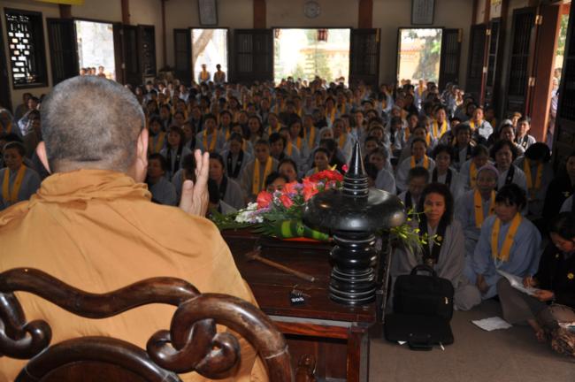 Qua buổi nói chuyện, Hòa Thượng đã tán dương công đức tu tập của Phật tử, nhất là khuyến giáo các Phật tử luôn giữ vững niềm tin với Phật pháp, khéo thanh lọc 3 nghiệp thân, khẩu, ý để tâm an lạc, thanh tịnh.
