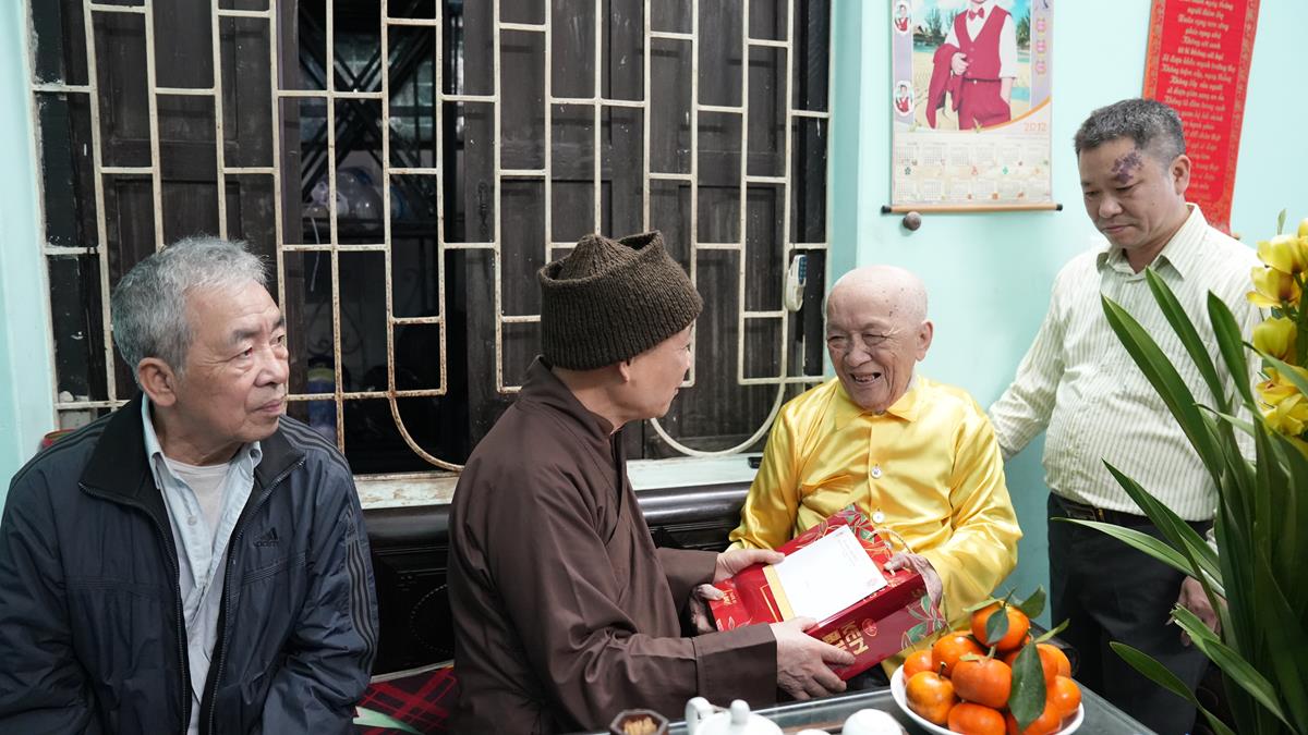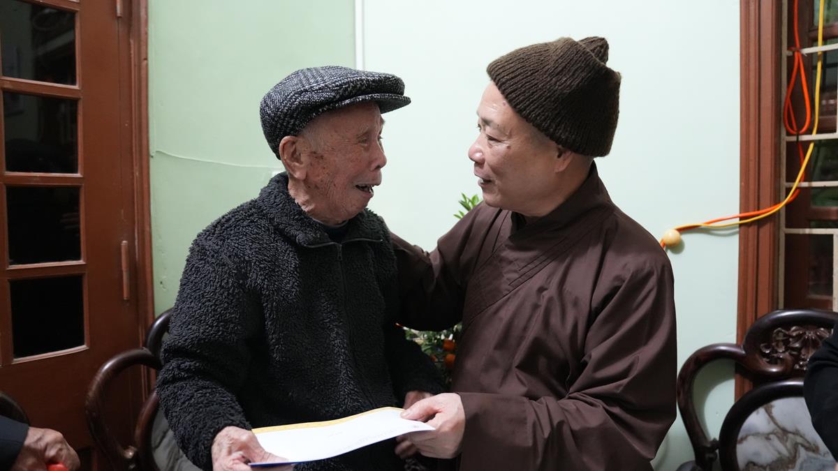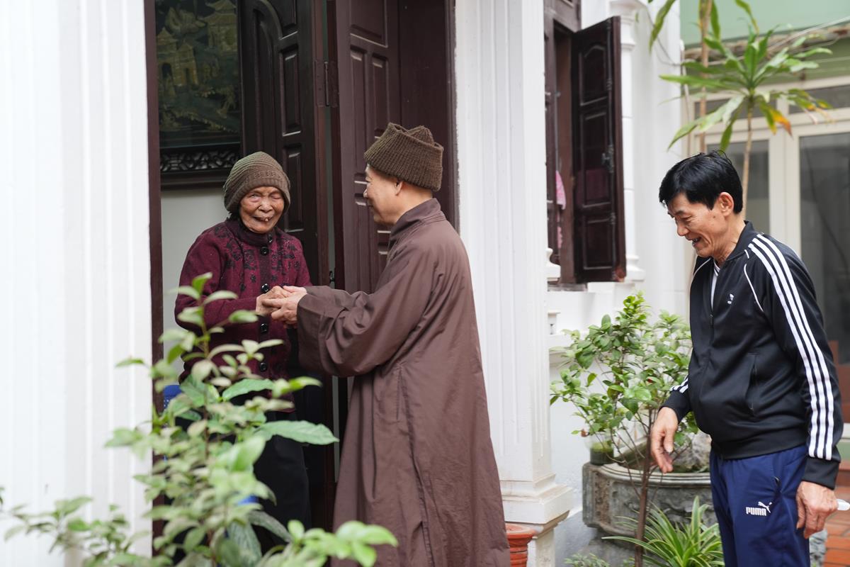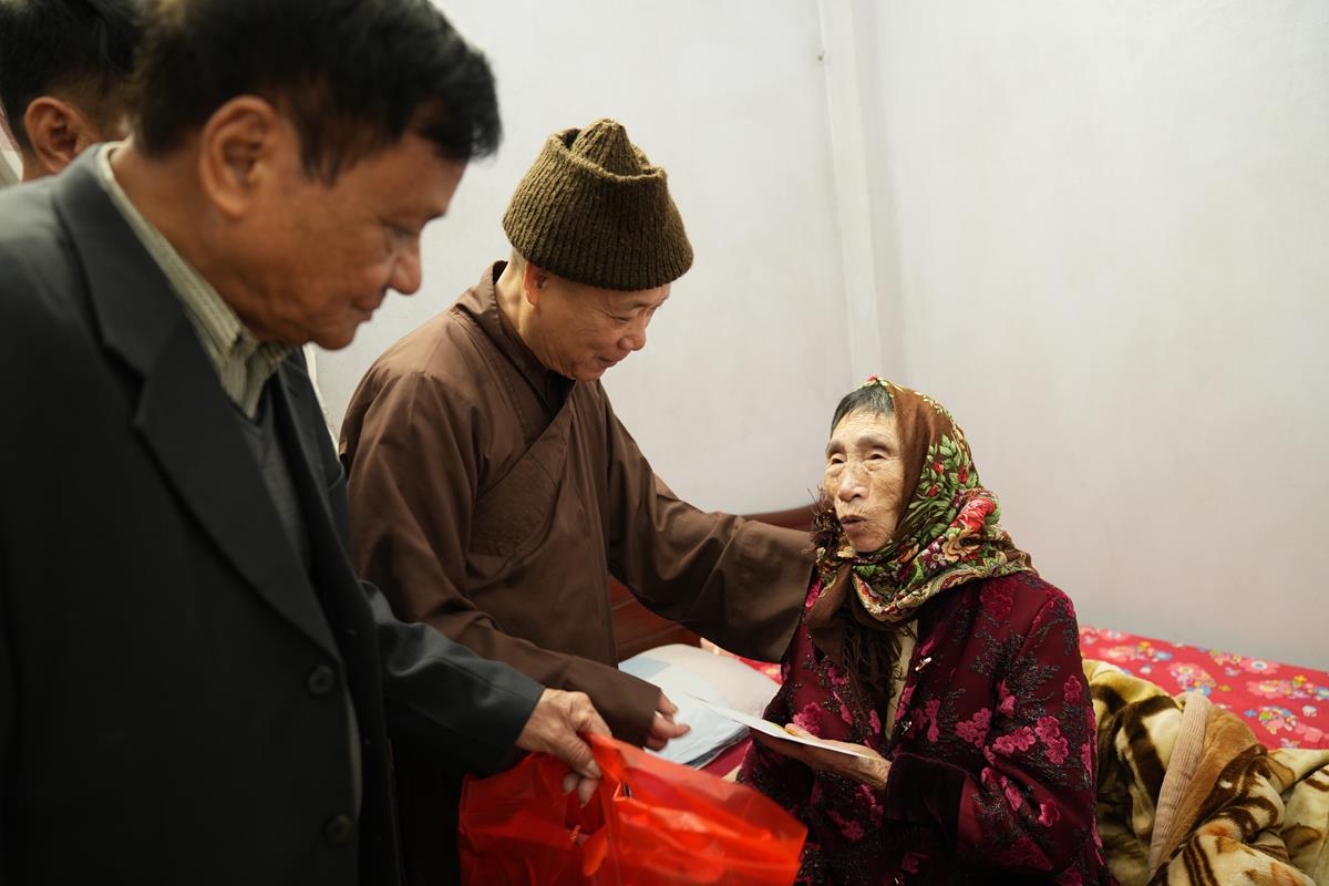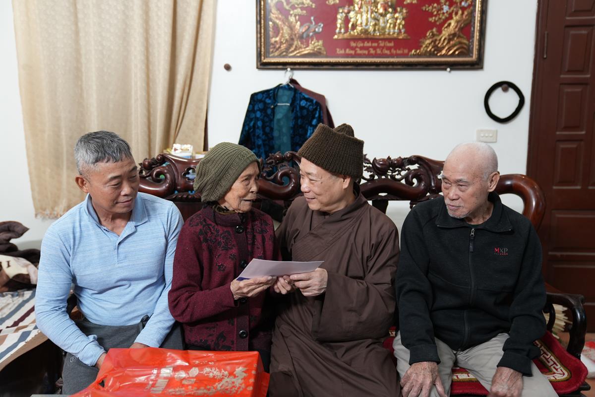 Nhờ sự giúp đỡ tận tình của ông Nguyễn Đình Tuất – Nguyên Bí thư chi bộ khu dân cư Bằng A và ông Lưu Bách Phượng – Nguyên Bí thư chi bộ khu dân cư Bằng B, Hòa thượng đã tới thăm hỏi, chúc thọ đồng thời trao tận tay các cụ ông cụ bà những món quà của Hòa thượng cùng Đạo tràng Pháp Hoa chùa Bằng. Mỗi món quà bao gồm hộp quà Tết và phong bì với tổng trị giá là gần 20 triệu đồng.