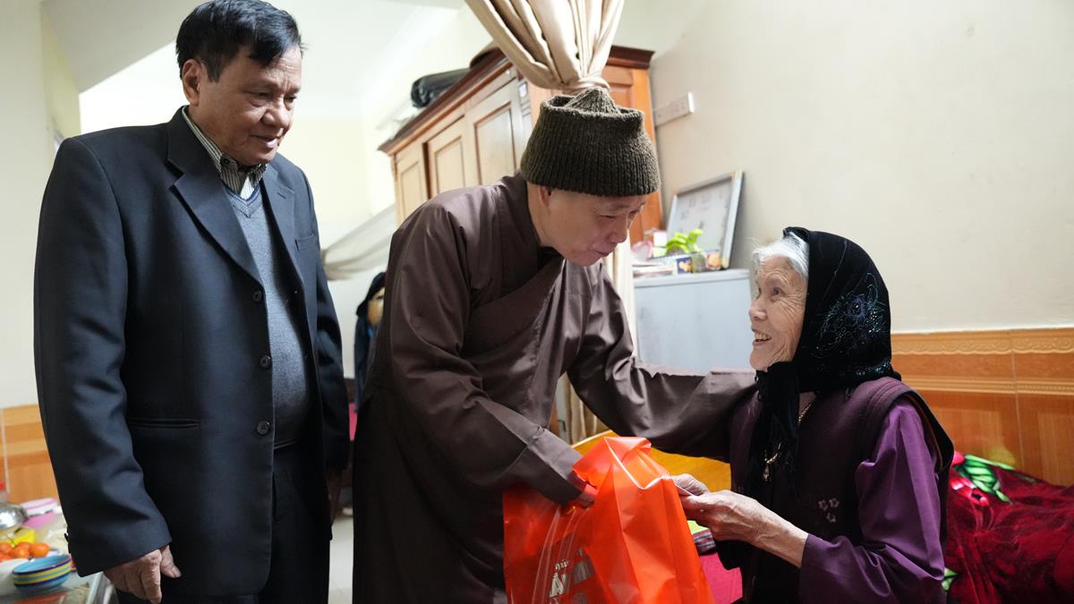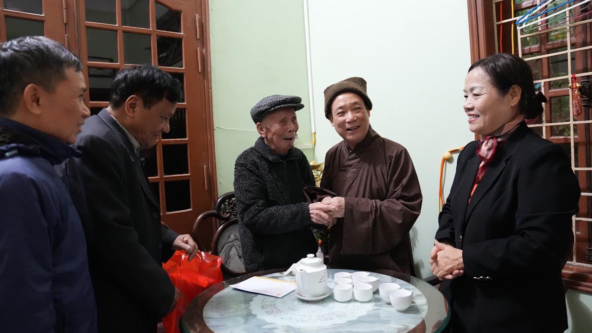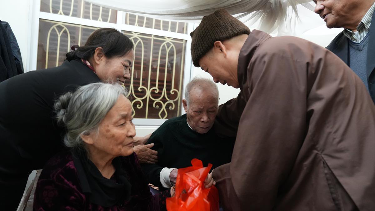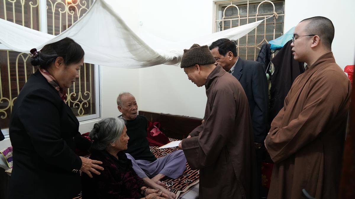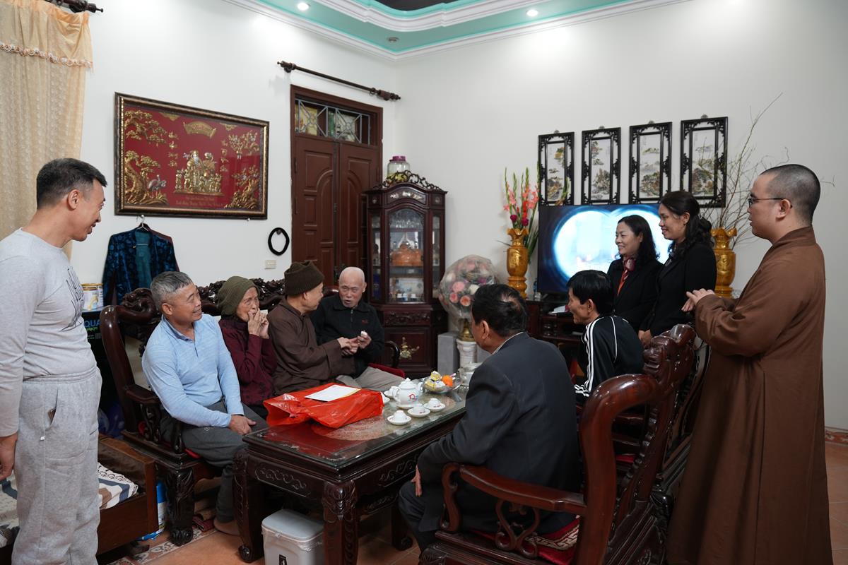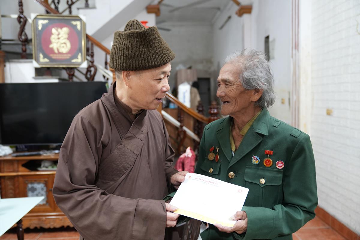 Nhờ sự giúp đỡ tận tình của ông Nguyễn Đình Tuất – Nguyên Bí thư chi bộ khu dân cư Bằng A và ông Lưu Bách Phượng – Nguyên Bí thư chi bộ khu dân cư Bằng B, Hòa thượng đã tới thăm hỏi, chúc thọ đồng thời trao tận tay các cụ ông cụ bà những món quà của Hòa thượng cùng Đạo tràng Pháp Hoa chùa Bằng. Mỗi món quà bao gồm hộp quà Tết và phong bì với tổng trị giá là gần 20 triệu đồng.
