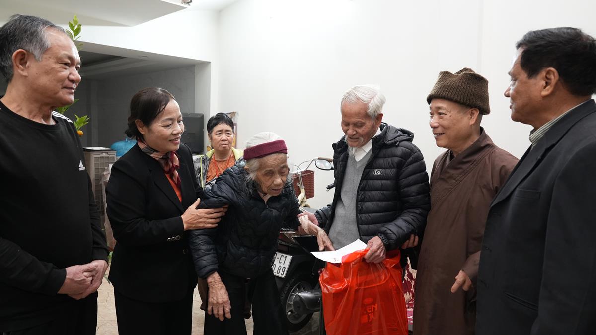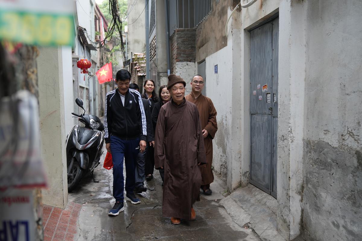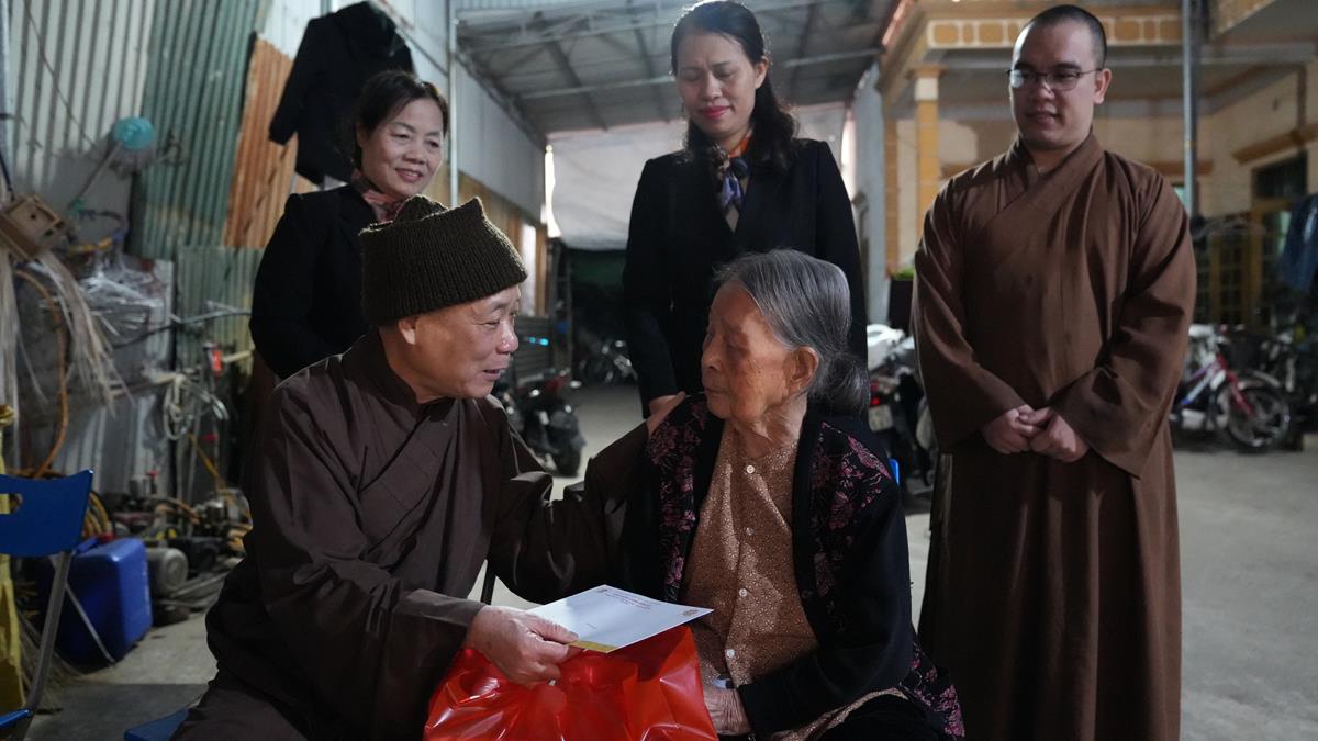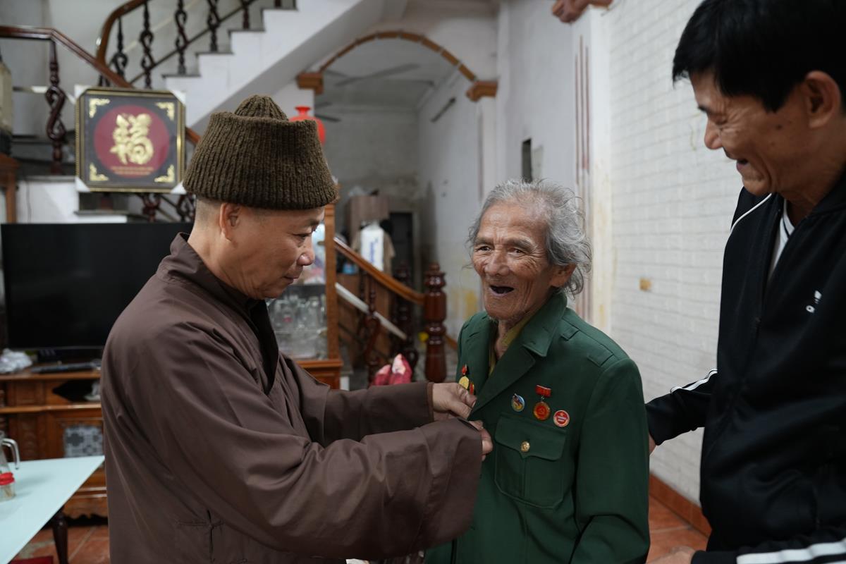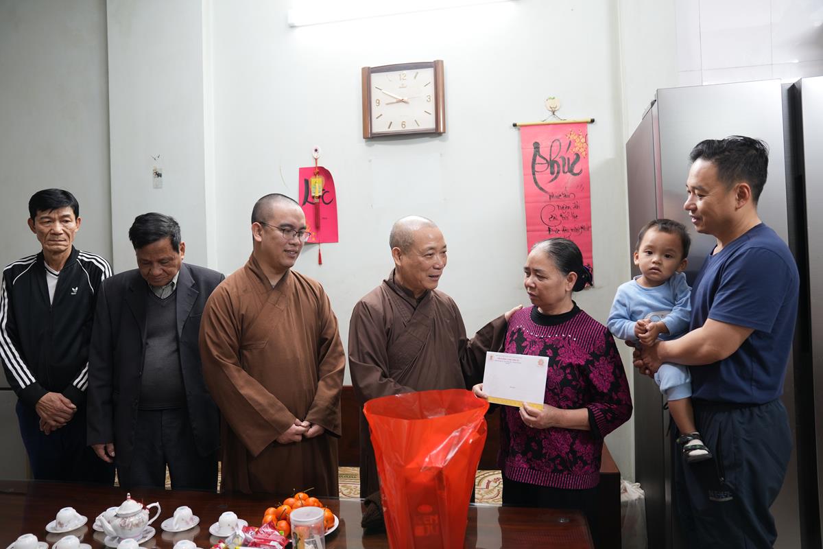 Nhờ sự giúp đỡ tận tình của ông Nguyễn Đình Tuất – Nguyên Bí thư chi bộ khu dân cư Bằng A và ông Lưu Bách Phượng – Nguyên Bí thư chi bộ khu dân cư Bằng B, Hòa thượng đã tới thăm hỏi, chúc thọ đồng thời trao tận tay các cụ ông cụ bà những món quà của Hòa thượng cùng Đạo tràng Pháp Hoa chùa Bằng. Mỗi món quà bao gồm hộp quà Tết và phong bì với tổng trị giá là gần 20 triệu đồng.