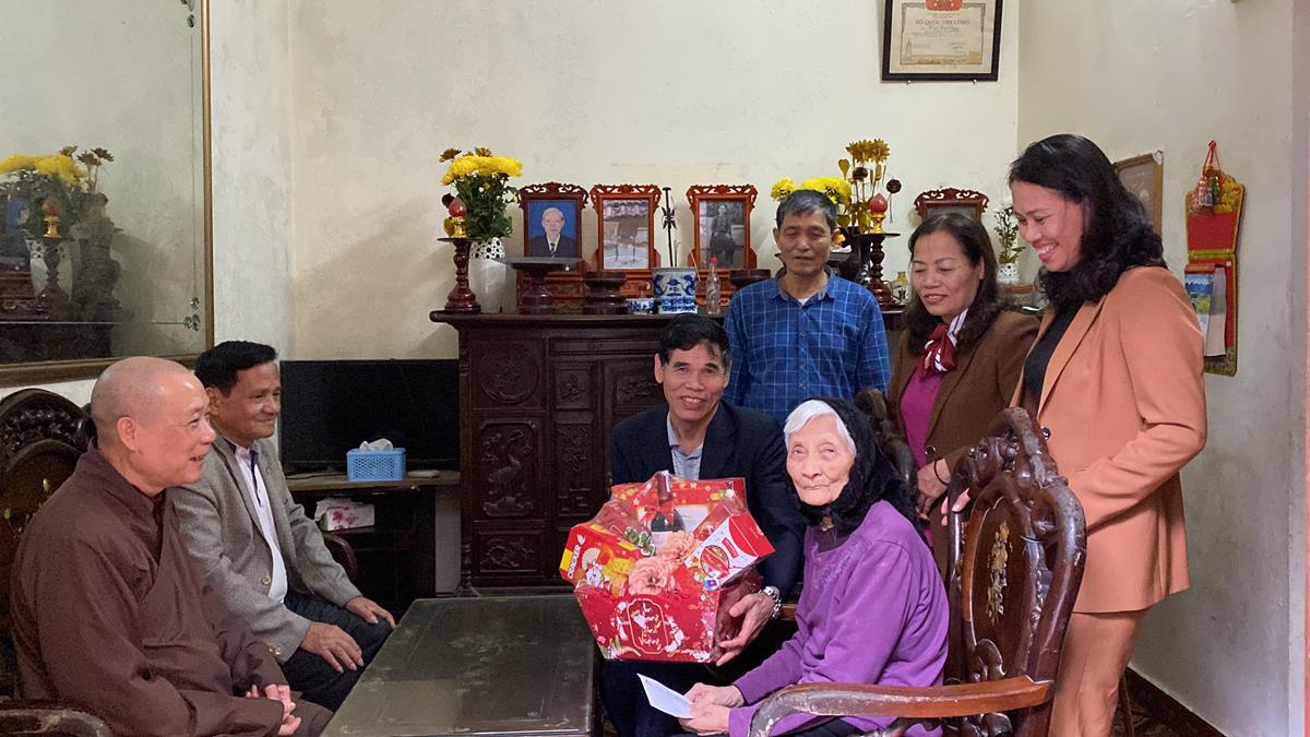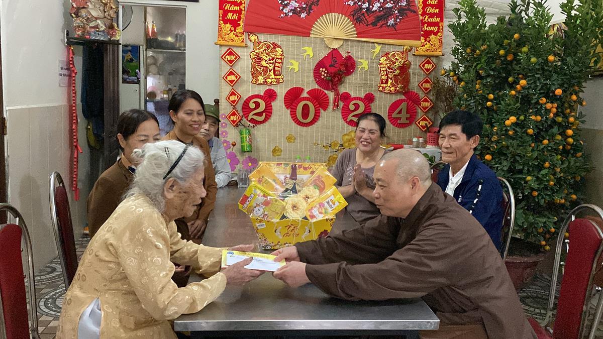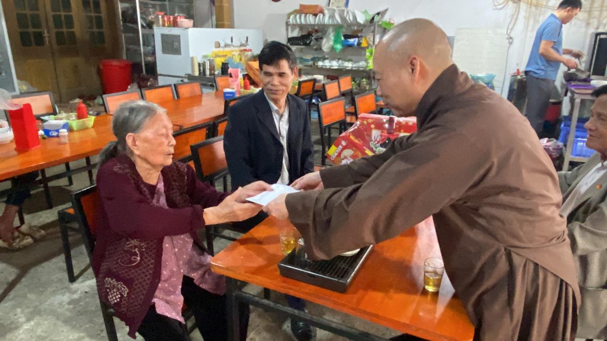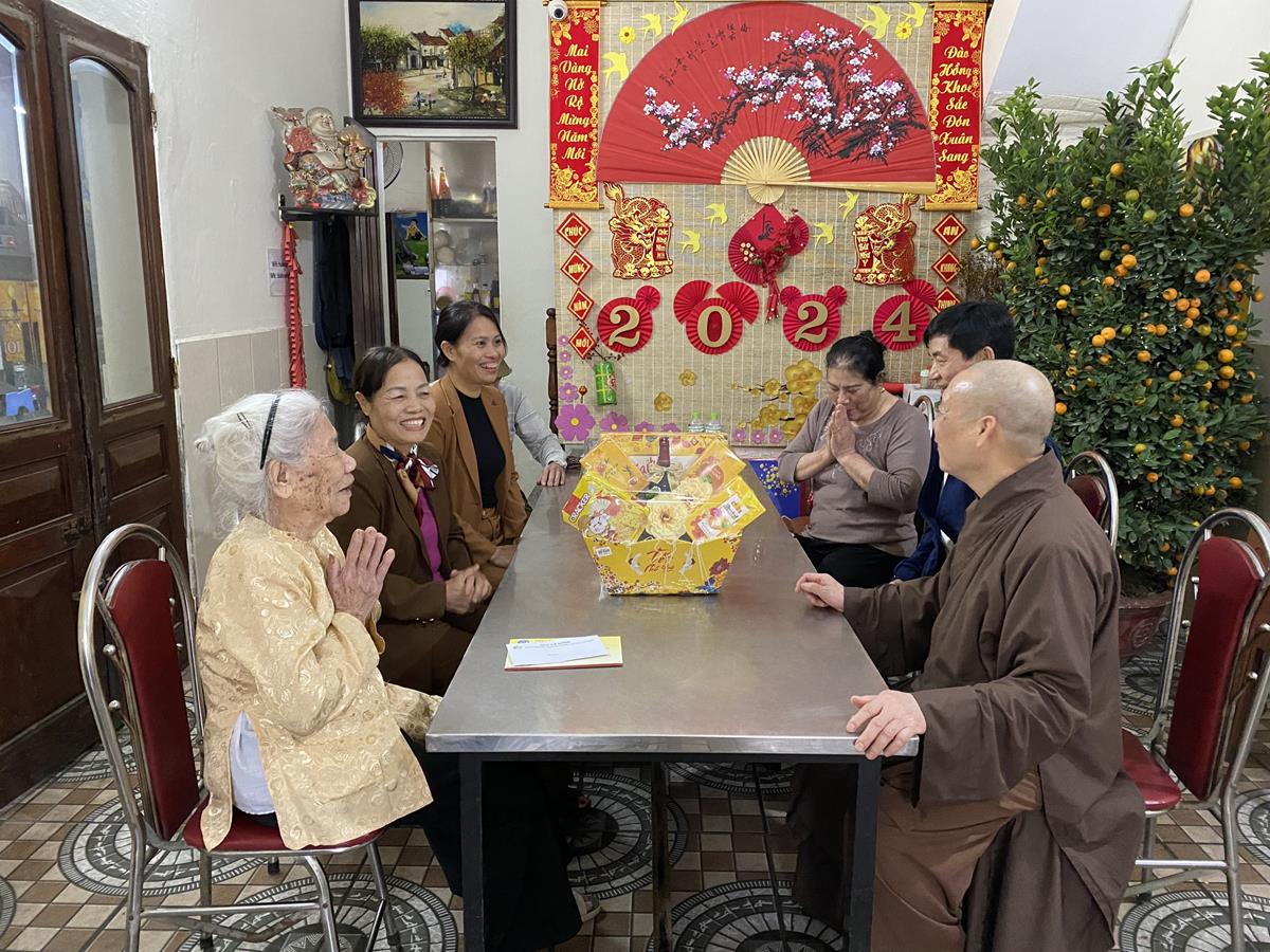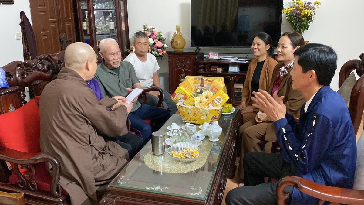 Nhờ sự giúp đỡ tận tình của ông Nguyễn Xuân Thảo – Bí thư chi bộ khu dân cư Bằng A và ông Lưu Bách Phượng – Bí thư chi bộ khu dân cư Bằng B, Hòa thượng đã tới thăm hỏi, chúc thọ đồng thời trao tận tay 8 cụ ông cụ bà những món quà của Hòa thượng và của câu lạc bộ thiện nguyện Lá Xanh (chùa Đống Cao, tỉnh Thái Bình) cùng Đạo tràng Pháp Hoa chùa Bằng. Mỗi món quà bao gồm lẵng quà Tết và phong bì với tổng trị giá là hơn 30 triệu đồng.
