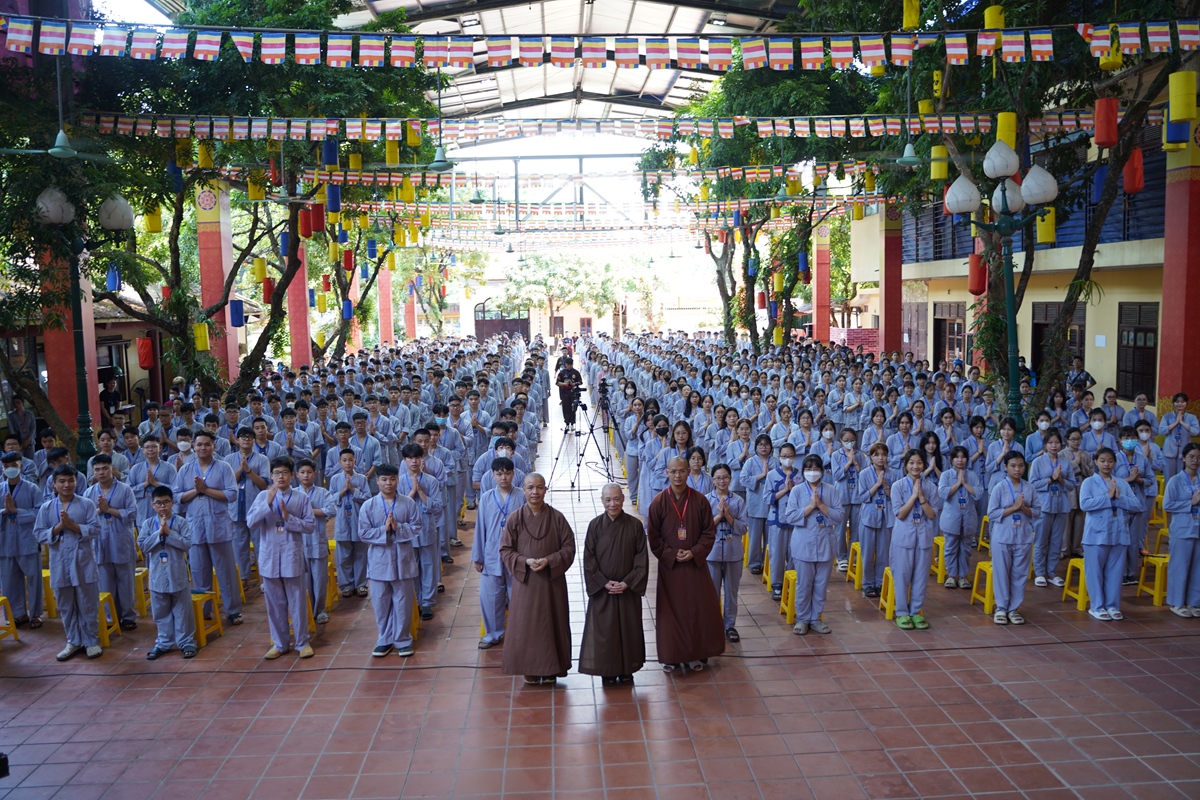 Tại đây, Hòa thượng Thích Bảo Nghiêm đã có đôi lời đạo từ khuyến tấn các bạn trẻ cố gắng nỗ lực tu học, gạt bỏ tạm thời những âu lo muộn phiền của cuộc đời để tập sống chậm, thư thái, thảnh thơi và vững chãi bên quý Thầy và các bạn đồng tu. Hòa thượng cũng đã tán thán những nỗ lực của chư vị trong BTC, quản sinh, an ninh, công quả… đã không ngại vất vả đóng góp sức lực để hỗ trợ khóa tu thành công tốt đẹp. Qua khóa tu “Con về bên Phật” lần này, Ban tổ chức mong các bạn có thể hiểu thấu sự thương yêu hi sinh tựa biển trời của cha mẹ, nhìn nhận mọi việc dưới góc nhìn từ bi trí tuệ của Đạo Phật, để từ đó biết sống hiếu thảo, chăm ngoan, nỗ lực học tập để dựng xây quê hương đất nước.