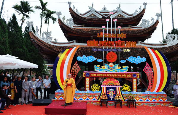 Phát biểu tại lễ khai hội, Chủ tịch UBND huyện Mỹ Đức Nguyễn Văn Hoạt cho biết, năm 2018, huyện Mỹ Đức đón nhận Bằng di tích quốc gia đặc biệt của Thủ tướng Chính phủ dành cho Di tích lịch sử và danh lam thắng cảnh quần thể Hương Sơn (chùa Hương), do đó, Lễ hội chùa Hương năm 2019 được Đảng bộ, chính quyền và nhân dân huyện Mỹ Đức dành nhiều tâm sức chuẩn bị tổ chức nhằm có được một mùa lễ hội an toàn, văn minh, đồng thời gìn giữ và phát huy hiệu quả các giá trị của di sản.