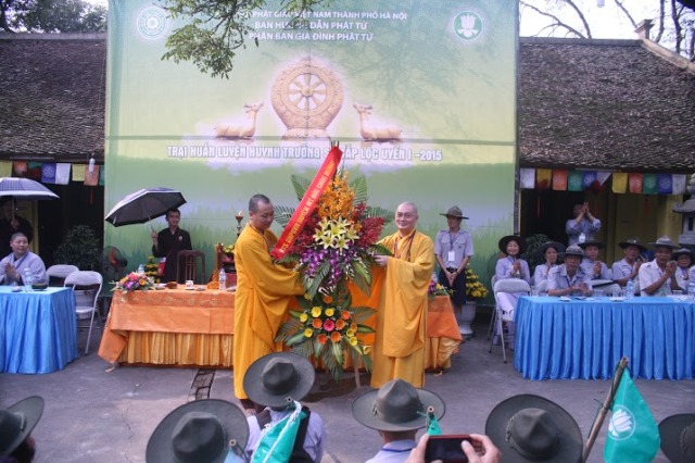 Phát biểu khai mạc buổi lễ, ĐĐ. Thích Di Sơn – Phó Trưởng ban kiêm Chánh thư ký BHDPT TP. Hà Nội đã thể hiện quyết tâm của Thường trực cũng như Ban Hướng dẫn Phật tử TP Hà Nội đối với việc phát triển tổ chức GĐPT; chào mừng sự hiện diện của các Huynh trưởng trại sinh, những người tiên phong của GĐPT Hà Nội.