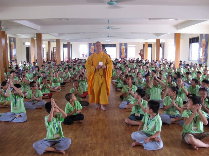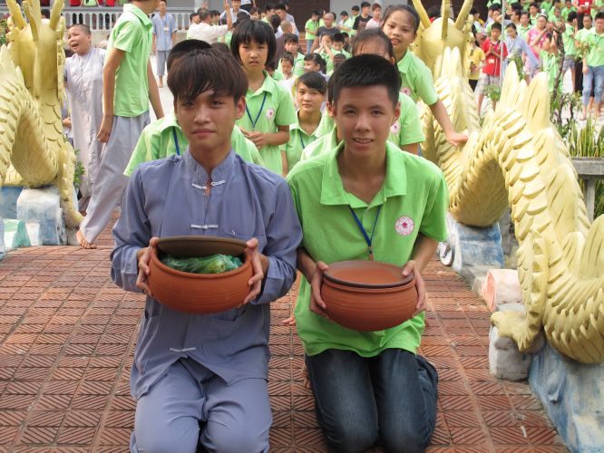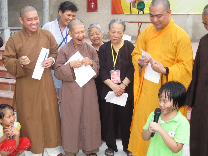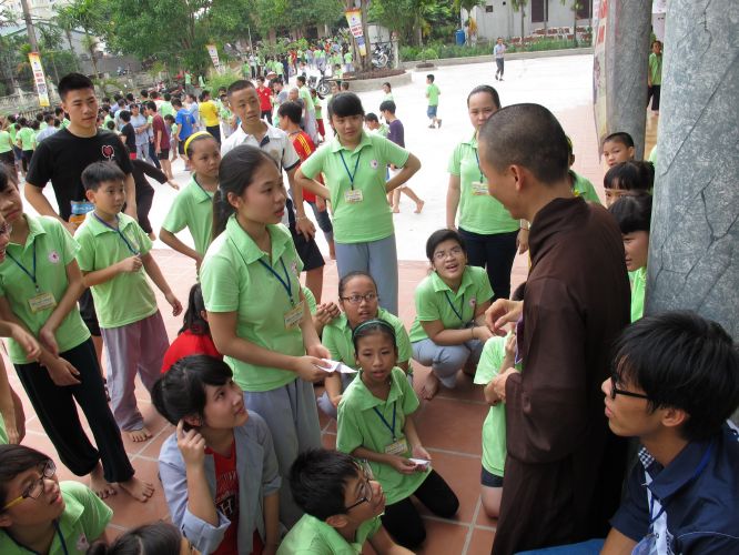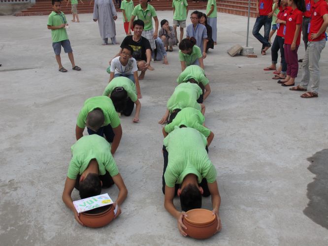 Tiếp đến, các tu sinh được quý thầy cô trong BTC hướng dẫn cuộc thi “Gia đình cùng vượt khó”. Đó là các bạn trẻ phải vượt qua rào cản đầu tiên với cuộc thi vượt chướng ngại vật do anh Nguyễn Sơn phụ trách. Phần tiếp theo, các bạn trẻ sẽ vào điện Phật để tiếp tục vượt qua chặng thứ hai do SC. TN Như Nhân đảm nhận. Chặng tiếp đến do ĐĐ. Thích Minh Thạnh đảm trách. Khó khăn nhất là chặng cuối cùng, do ĐĐ. Thích Lệ Minh đảm nhiệm, các bạn trẻ phải thực hành hạnh tu “Tam bộ nhất bái” để hoàn thiện phần thi của mình.