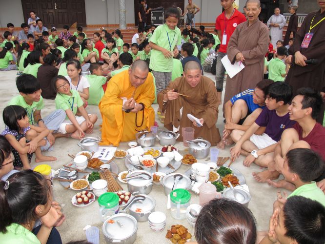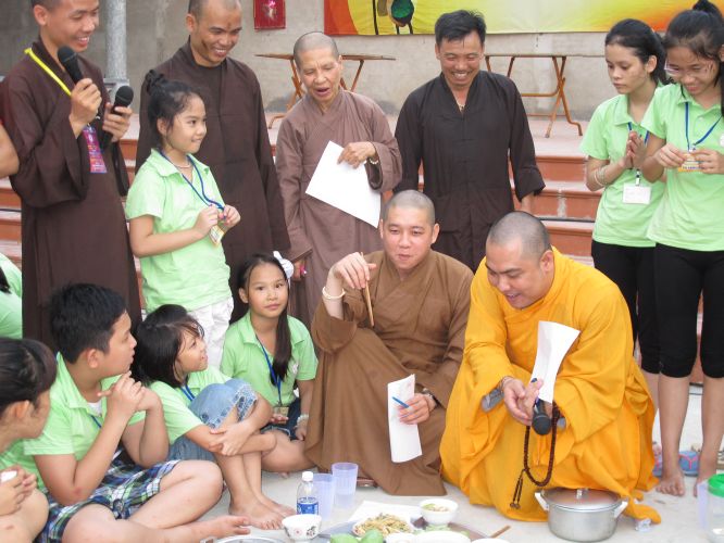 Phần thi tiếp theo là sự thể hiện tài khéo léo trong nấu nướng của các bạn trẻ và cuối cùng là phần thi trang trí, thể hiện tính mỹ thuật cao và kiến thức về đạo pháp và cuộc sống trong bài thuyết trình.