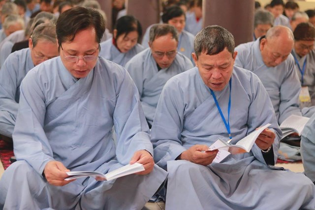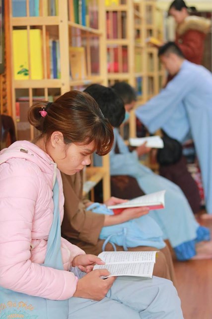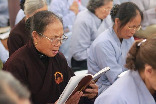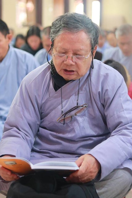 Buổi sáng, dưới sự hướng dẫn của Đại đức Thích Tâm Hòa trụ trì chùa Hòa Phúc, quý vị Phật tử đã tham gia thời khoá Tụng kinh Phổ Môn.