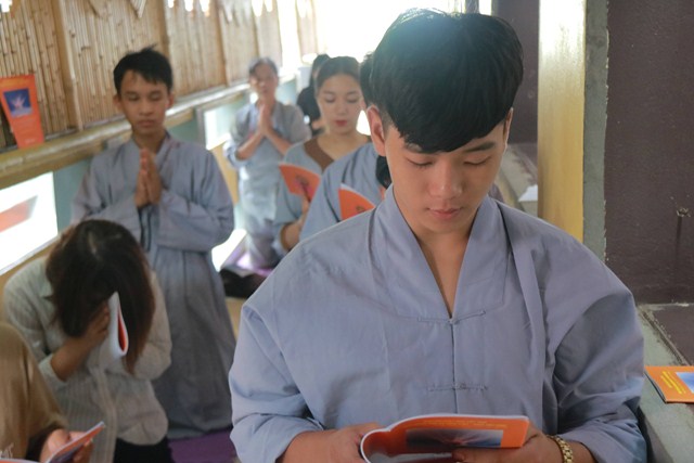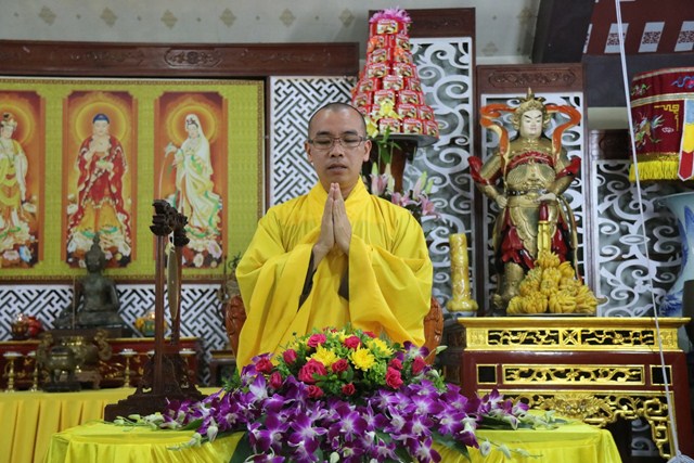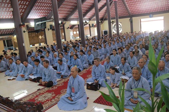 Đến 8 giờ sáng, khi đạo tràng đã ổn định quý Phật tử đã đồng niệm lớn hồng danh Đức Phật A Di Đà để cung nghinh Đại Đức Thích Tâm Hòa – Trụ trì chùa Hòa Phúc quang lâm Pháp tòa chia sẻ Phật Pháp. Tiếp nối bài pháp thoại trong chương trình tu học hàng tháng, Đại Đức đã chia sẻ về 3 loại người trong cõi ta bà: Người tầm thường, người bình thường, người phi thường. Đại Đức còn đặc biệt nhắc đến những người rơi vào tà kiến trong quá trình tu tập dẫn đến sai đường lạc lối. Câu chuyện Phật giáo về ngài Xá Lợi Phất hóa độ cho mẫu thân trước lúc nhập Niết Bàn được Đại Đức chia sẻ đã thu hút quý Phật tử lắng nghe.