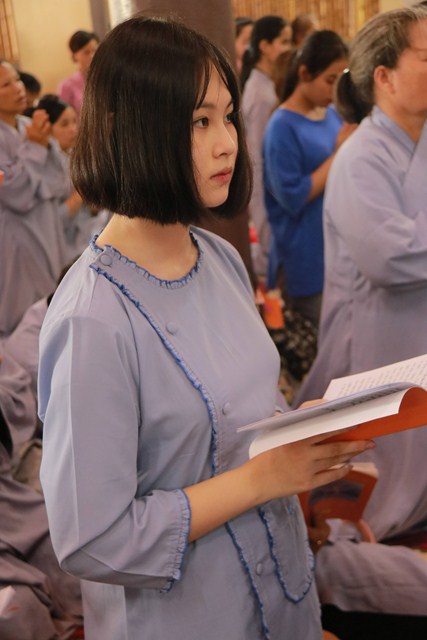Sau thời khóa tu tập buổi sáng, quý Phật tử đã được thưởng thức những món chay thanh mát, bổ dưỡng do chư Tăng và Phật tử chùa Hòa Phúc chuẩn bị. Đúng 1 giờ chiều các Phật tử đã tham dự thời khóa tu tập tụng kinh do Đại Đức Thích Tâm Giải – Phó trụ trì chùa Hòa Phúc xướng lễ. Trước khi khép lại khóa tu “Một ngày an lạc” Quý chư Tăng chùa Hòa Phúc đã gửi lời mời tới các Phật tử cùng về dự Pháp Hội Địa Tạng – Cầu Siêu Phả Độ Gia Tiên – Vu Lan Báo Hiếu – Đêm Hội Hoa Đăng Cầu Quốc Thái Dân An (3 ngày đêm) tại chùa Hòa Phúc từ ngày 31/8 đến mùng 2/9/2018.