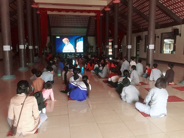 Trước khi kết thúc ngày tu thiếu nhi, các bạn nhỏ đã cùng nhau đón xem bộ phim hoạt hình Phật giáo “Nhất Hưu Hòa thượng” và tham gia các hoạt động vui chơi thể thao như đá cầu, đá bóng…