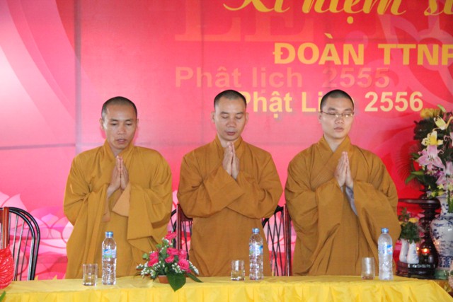 Chứng minh buổi lễ có TT. Thích Tâm Thuần- Ủy viên Ban Hoằng Pháp TW- Phó Ban Hoằng Pháp THPG Hà Nội – Trụ trì Thiền việc Sùng Phúc; TT Thích Thông Phương – Trụ trì Thiền viện Trúc lâm Yên Tử; chư Tôn đức Thiền việc Sùng Phúc,chư Tôn đức Tăng Ni TP. Hà Nội, các tỉnh Hưng Yên,Thanh Hóa, Vĩnh Phúc, Quảng Ninh….cùng đông đảo Thanh thiếu niên Phật tử Thủ đô CLB Thanh thiếu niên Phật tử Quán Sứ, Đoàn Thanh thiếu niên Phật tử chùa Thường Tín…