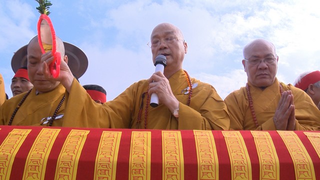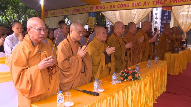 Ban đạo từ tại buổi lễ, HT. Thích Bảo Nghiêm – PCT HĐTS, Trưởng BTS GHPGVN TP Hà Nội đã tán thán công đức của HT trụ trì trong việc xây dựng ngôi Đại hùng Bảo điện được trang nghiêm tố hảo như ngày hôm nay. Cuối buổi lễ, chư tôn đức cùng toàn thể đại chúng đã thực hiện các nghi thức dâng hương bạch Phật, trì trú Đại Bi và an vị long cốt ngôi chùa.