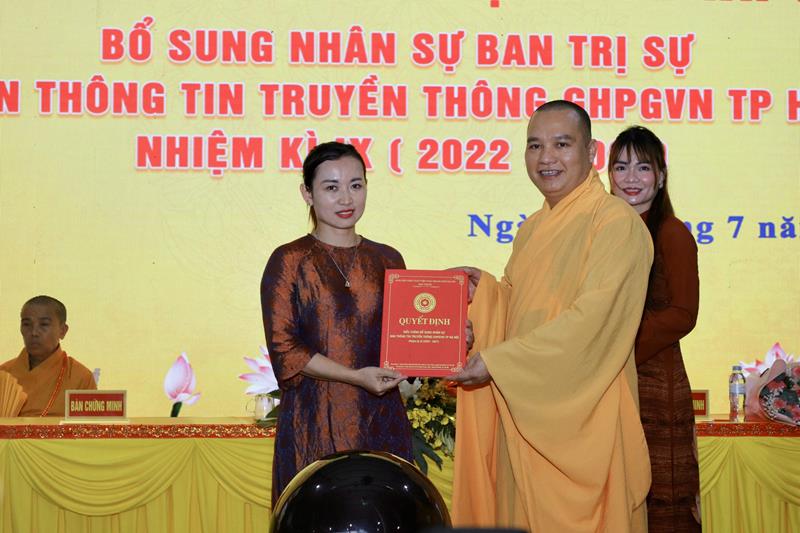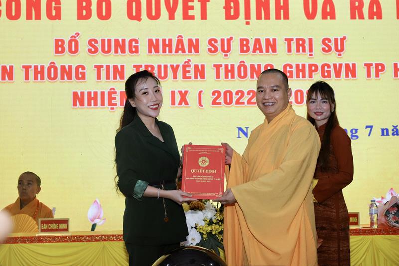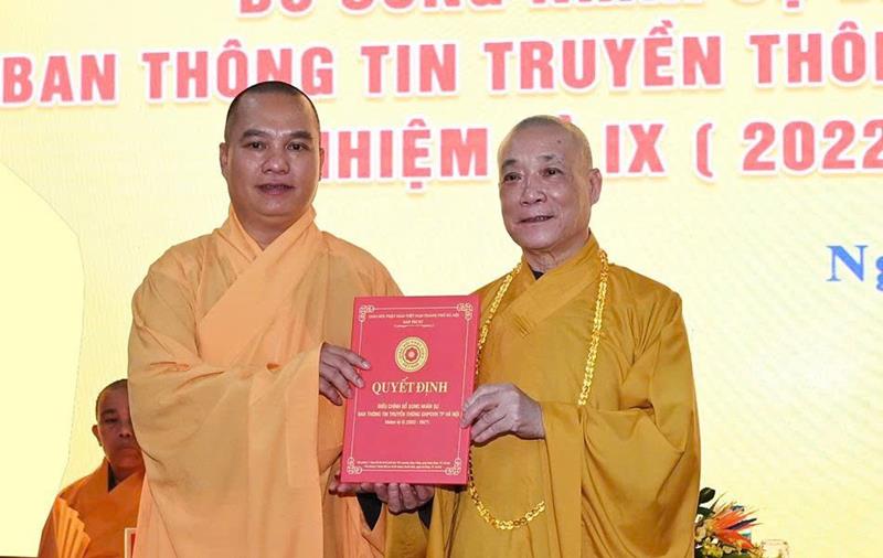 Hòa thượng Thích Bảo Nghiêm – Trưởng Ban Trị sự GHPGVN Tp Hà Nội trao quyết định bổ sung 2 thành viên Thường trực Ban Trị sự GHPGVN Tp Hà Nội có: Thượng tọa Thích Đạo Thịnh – Trưởng Ban Thông tin – Truyền thông GHPGVN Tp.Hà Nội và Thượng tọa Thích Quảng Thiện – Phó Trưởng Ban Thường trực Ban Thông tin – Truyền thông GHPGVN Tp.Hà Nội.