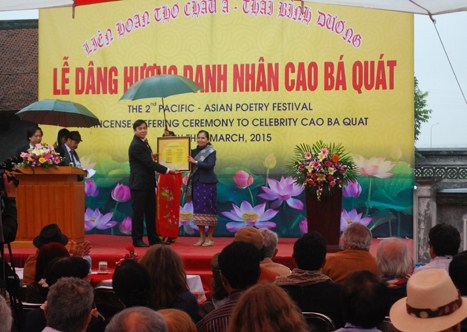 Trước khi bắt đầu vào buổi lễ là màn dâng hương tưởng niệm Danh nhân Cao Bá Quát. Mỗi nén hương dâng lên tượng trưng cho niềm kính mến tới vị danh nhân xuất sắc của Việt Nam – Người đã mang lại một sức sống mới cho thơ ca Việt Nam thế kỷ XIX.