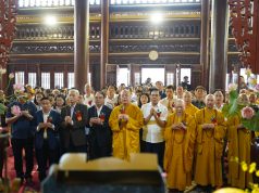 Chứng minh buổi lễ có Hòa thượng Thích Bảo Nghiêm – Phó chủ tịch HĐTS, Trưởng Ban Hoằng pháp TƯ, Trưởng BTS GHPGVN thành phố Hà Nội; Đại đức Thích Thanh Hồi – Ủy viên BTS GHPGVN thành phố Hà Nội, Trưởng BTS GHPGVN huyện Thạch Thất cùng quý chư Tôn đức Tăng Ni trụ trì các chùa trên địa bàn thành phố.