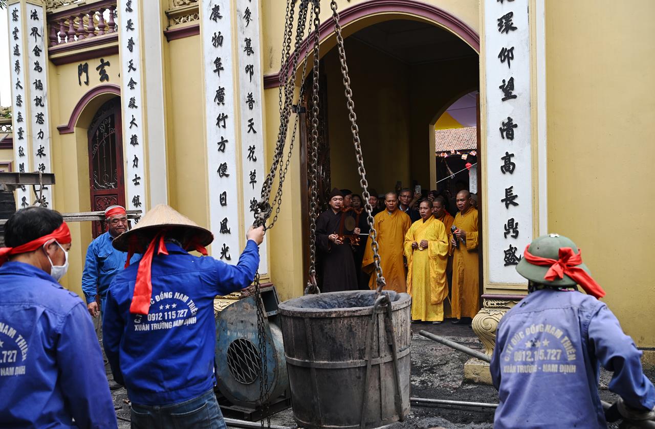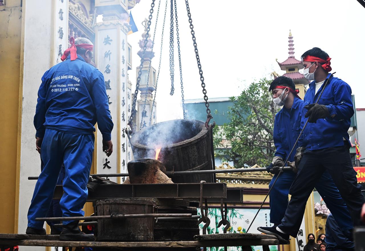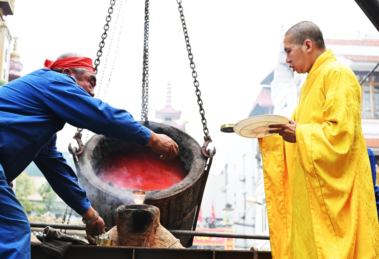 Giây phút dòng đồng nóng chảy đổ vào khuôn đúc cũng là lúc niềm tin và hy vọng của đại chúng được khơi dậy. Được biết, Đại Hồng Chung nặng gần 1 tấn, là kết tinh từ lòng hảo tâm của thiện nam tín nữ xa gần.