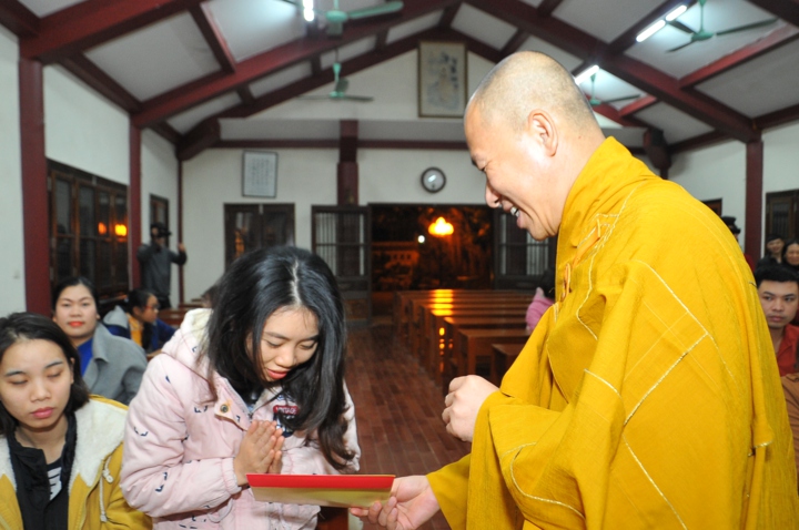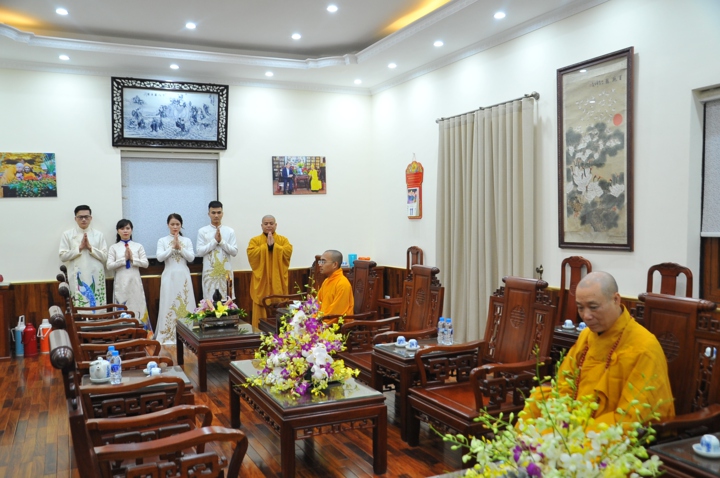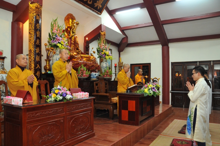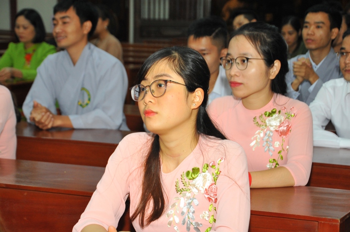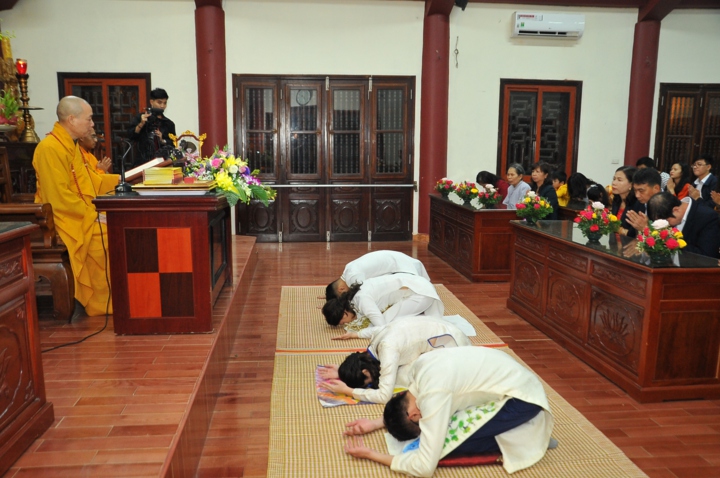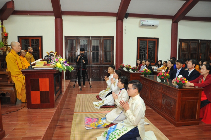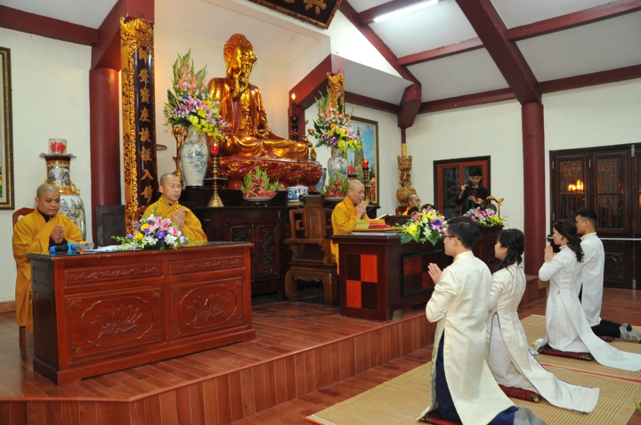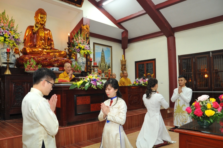 Trước khi cử hành nghi lễ hằng thuận, hai đôi bạn trẻ đã được Hòa thượng trụ trì và chư Tăng tác pháp quy y Tam Bảo và trao truyền Ngũ Giới để làm kim chỉ nam cho cuộc sống hiện tại. Các đôi tân lang tân nương đã được lắng nghe Hòa thượng trụ trì Thích Bảo Nghiêm giảng giải về đạo nghĩa vợ chồng trong kinh Thiện Sinh. Hòa thượng khuyến tấn hai đôi tân lang, tân nương phải sống trọn vẹn bổn phận làm vợ và làm chồng, làm dâu hiền, rể thảo cùng xây dựng hạnh phúc gia đình.