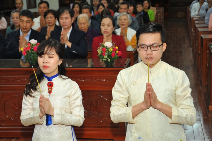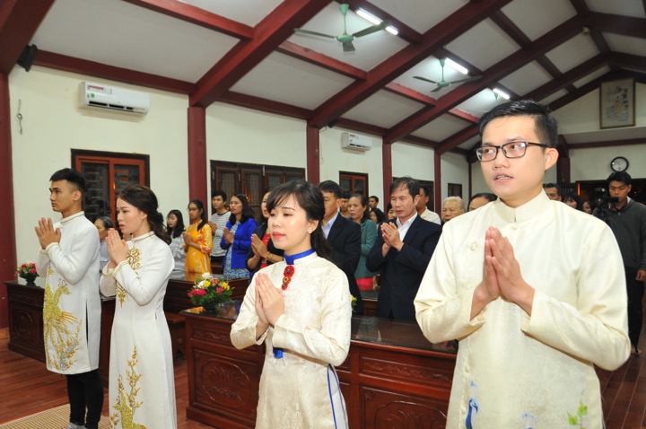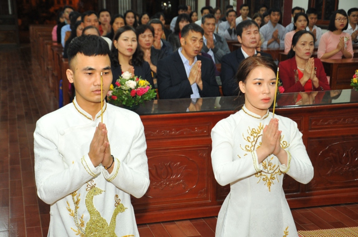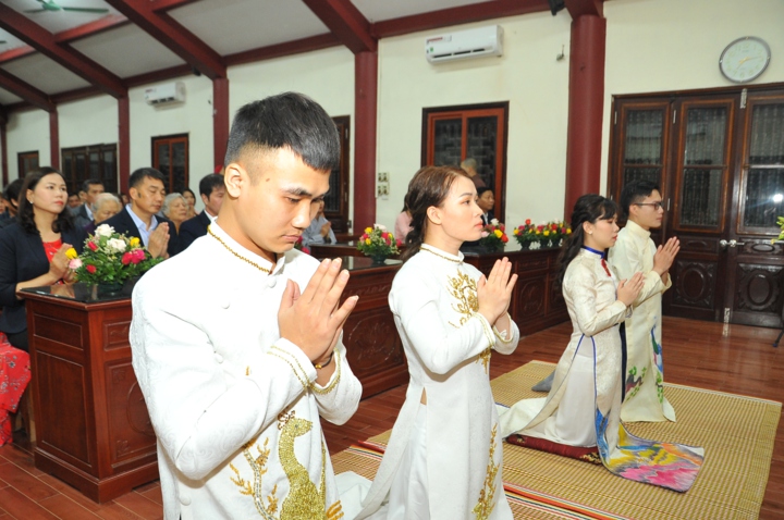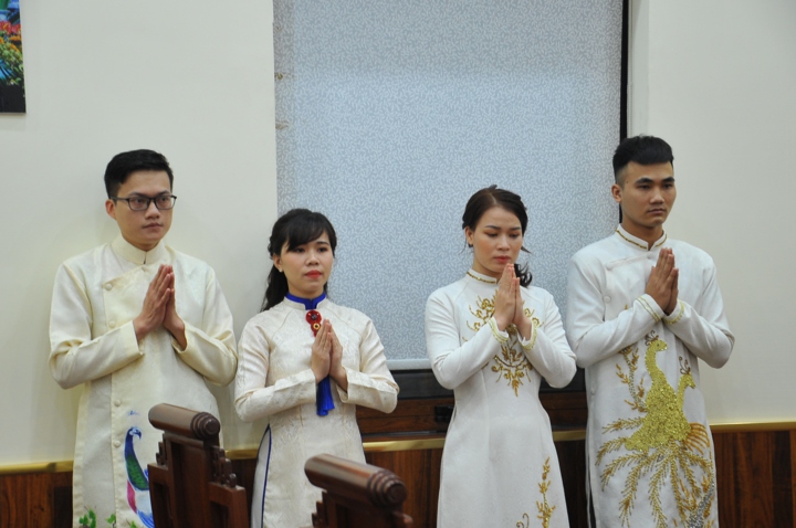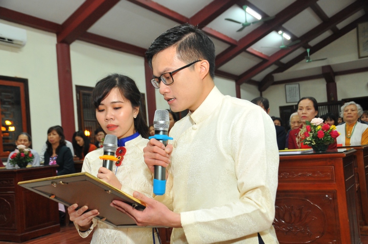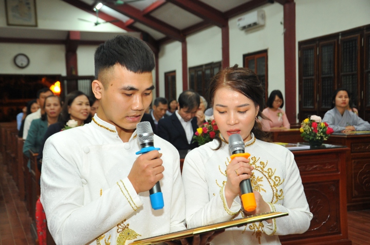 Cuối buổi lễ, hai đôi bạn trẻ đã đối trước chư tôn đức mà đọc lời thệ nguyện kết hôn.