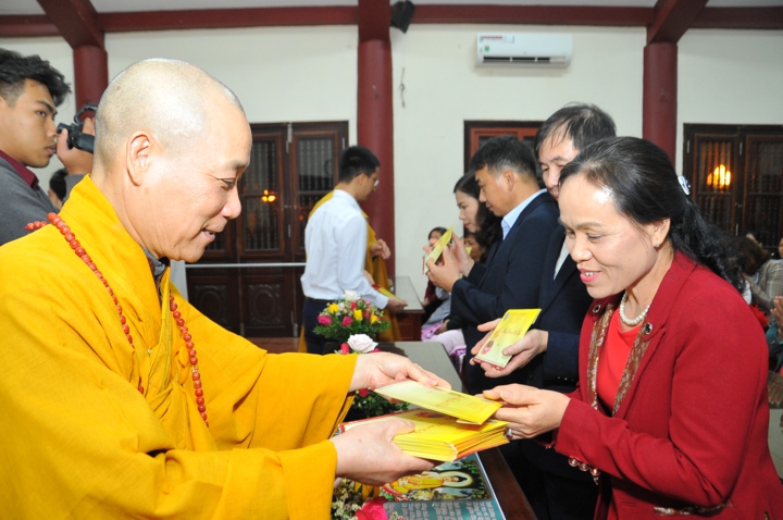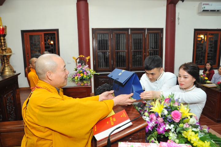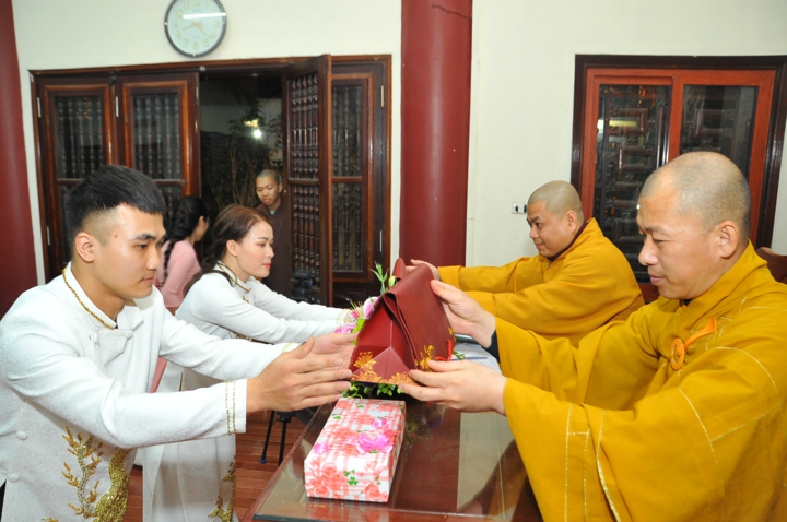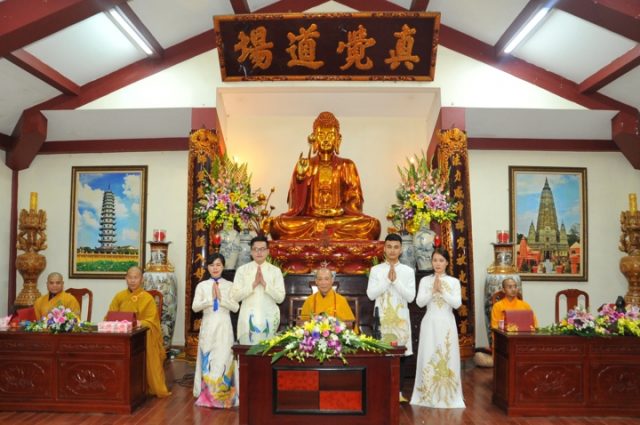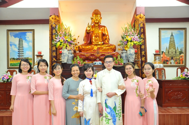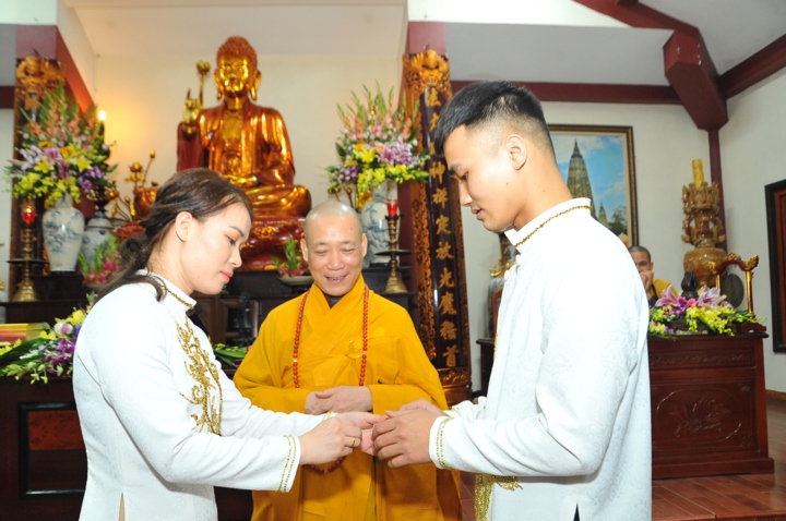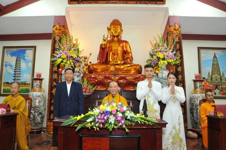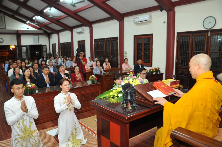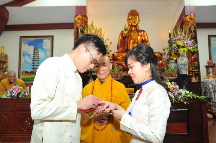 Vì lẽ đó, dưới sự gia hộ của mười phương chư Phật, sự chứng minh của Hòa thượng trụ trì Thích Bảo Nghiêm – Phó chủ tịch HĐTS kiêm Trưởng Ban hoằng pháp TƯ GHPGVN; Thượng tọa Thích Minh Nhẫn – Ủy viên HĐTS, Phó Ban kiêm Chánh thư ký Ban hoằng pháp TƯ, Phó Ban thông tin truyền thông TƯ và chư tôn đức Tăng bản tự, sự tham dự của họ hàng hai bên gia đình cùng câu lạc bộ Thanh thiếu niên Phật tử chùa Bằng, hai đôi bạn trẻ đã kết duyên vợ chồng.