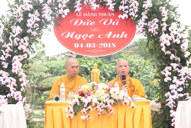 Đáp lời thỉnh cầu của tân lang, tân nương, Thượng tọa chứng minh đã chia sẻ về ý nghĩa lễ hằng thuận và ý nghĩa của chiếc nhẫn. “Hằng” có nghĩa là mãi mãi, không thay đổi. “Thuận” là hòa thuận. Hai bên gia đình muốn tổ chức ngày trọng đại của hai bạn với tên gọi “Lễ hằng thuận” để nhắc nhở các con luôn hòa thuận, cư xử đúng phép với nhau trong đời sống hôn nhân. Bên cạnh đó, chiếc nhẫn là vật đính ước nhắc nhở người đeo nhẫn luôn nhẫn nhịn, nhu hòa để giữ gìn hạnh phúc gia đình, làm tròn bổn phận của người Phật tử tại gia, noi gương hạnh của đức Phật.