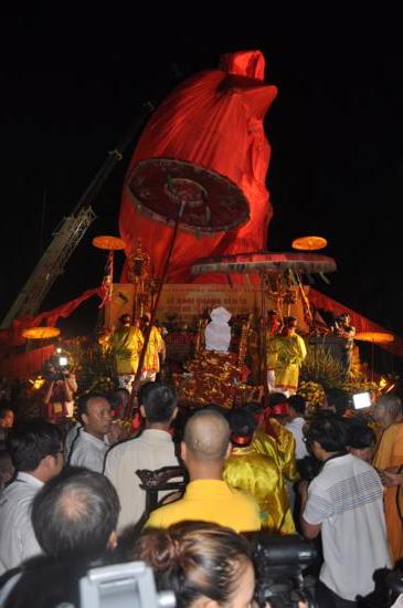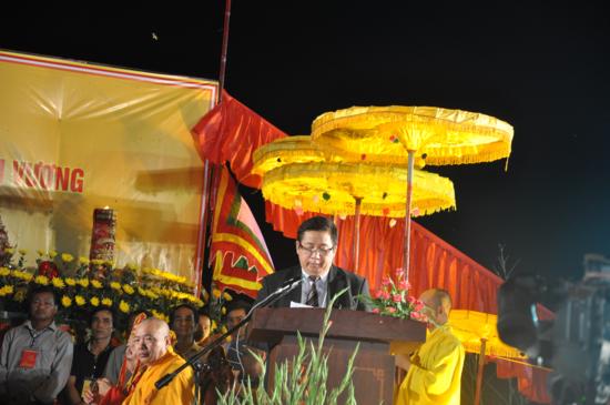 Tại buổi lễ Đại đức Thích Thanh Quyết – Uỷ viên HĐTS TW GHGVN – Phó viện trưởng Học viện Phật giáo Việt Nam tại Hà Nội phát biểu quá trình đúc tượng và cảm tạ các cấp chính quyền các nhà hảo tâm.