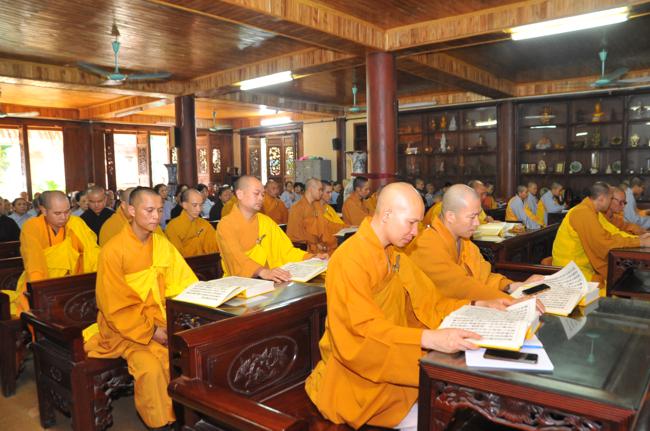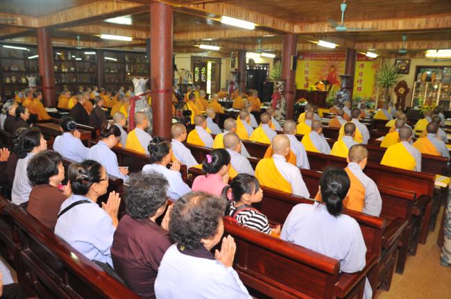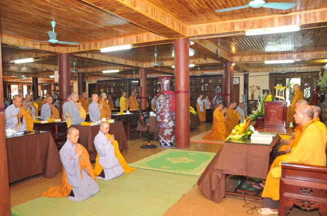 Tại buổi lễ, Hòa thượng thủ tọa Thích Bảo Nghiêm đã chia sẻ cho đại chúng hiểu về tầm quan trọng của việc an cư kết hạ đối với người đệ tử xuất gia, đồng thời giảng giải cho đại chúng hiểu về nội dung tóm tắt của bộ “Từ Bi Đạo Tràng Lương Hoàng Sám Pháp”.