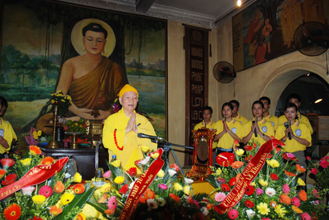 Sau đó, câu lạc bộ thanh niên Phật tử chùa Quán Sứ dâng hoa, phẩm vật và trình diễn các ca khúc Phật giáo cúng dàng lễ khai pháp.