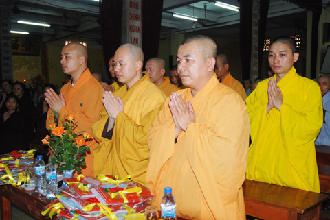Buổi lễ đặt dưới sự chứng minh và chủ trì của HT. Thích Thanh Tứ – đường chủ trường hạ, TT. Thích Thanh Nhiễu – Chánh duy na trường hạ, TT. Thích Gia Quang, TT. Thích Thanh Duệ cùng chư tôn đức Tăng Ni trường hạ tùng lâm Quán Sứ và đông đảo Phật tử chùa Quán Sứ.