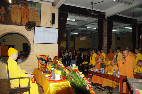 Tại buổi lễ, HT Thích Thanh Tứ thuyết giảng bộ kinh Đại bảo tích và động viên Tăng Ni tại trường hạ nỗ lực tu học, sống lục hòa, an lạc trong mùa an cư kiết hạ.
