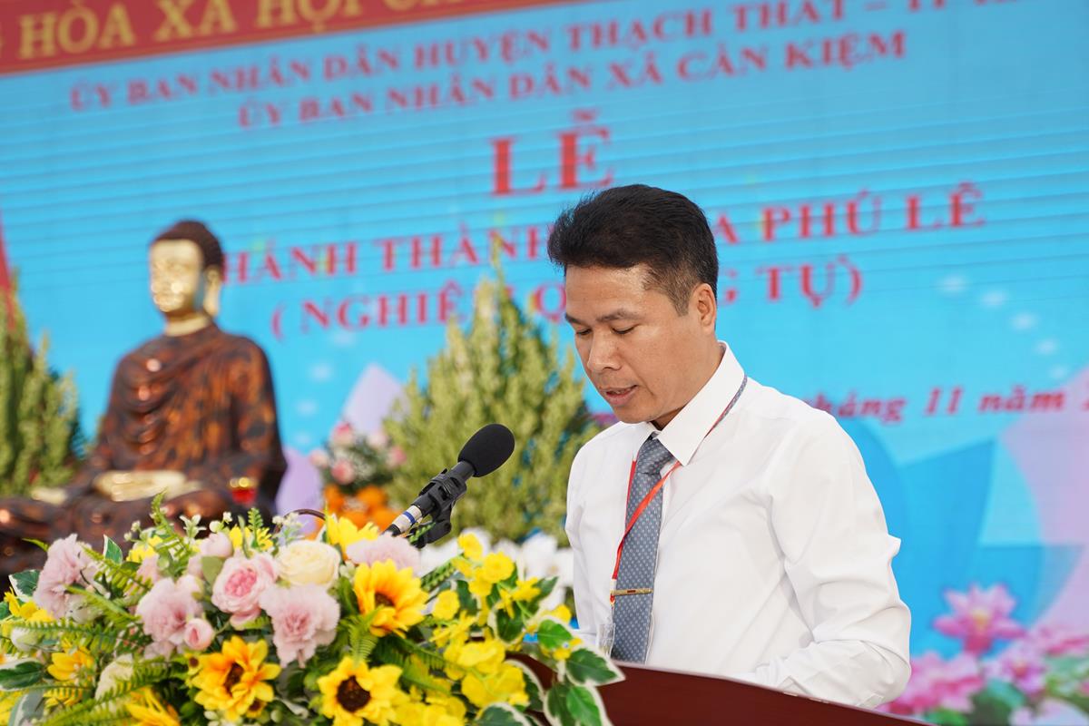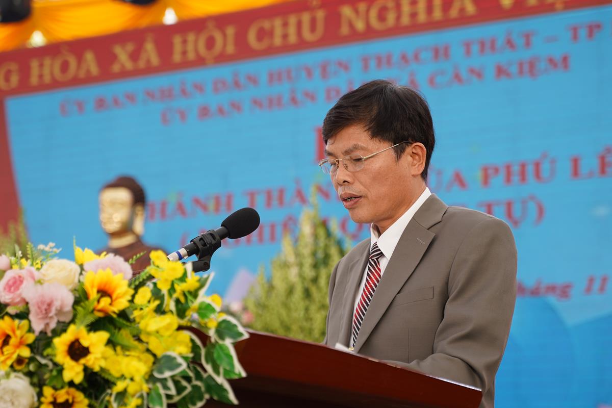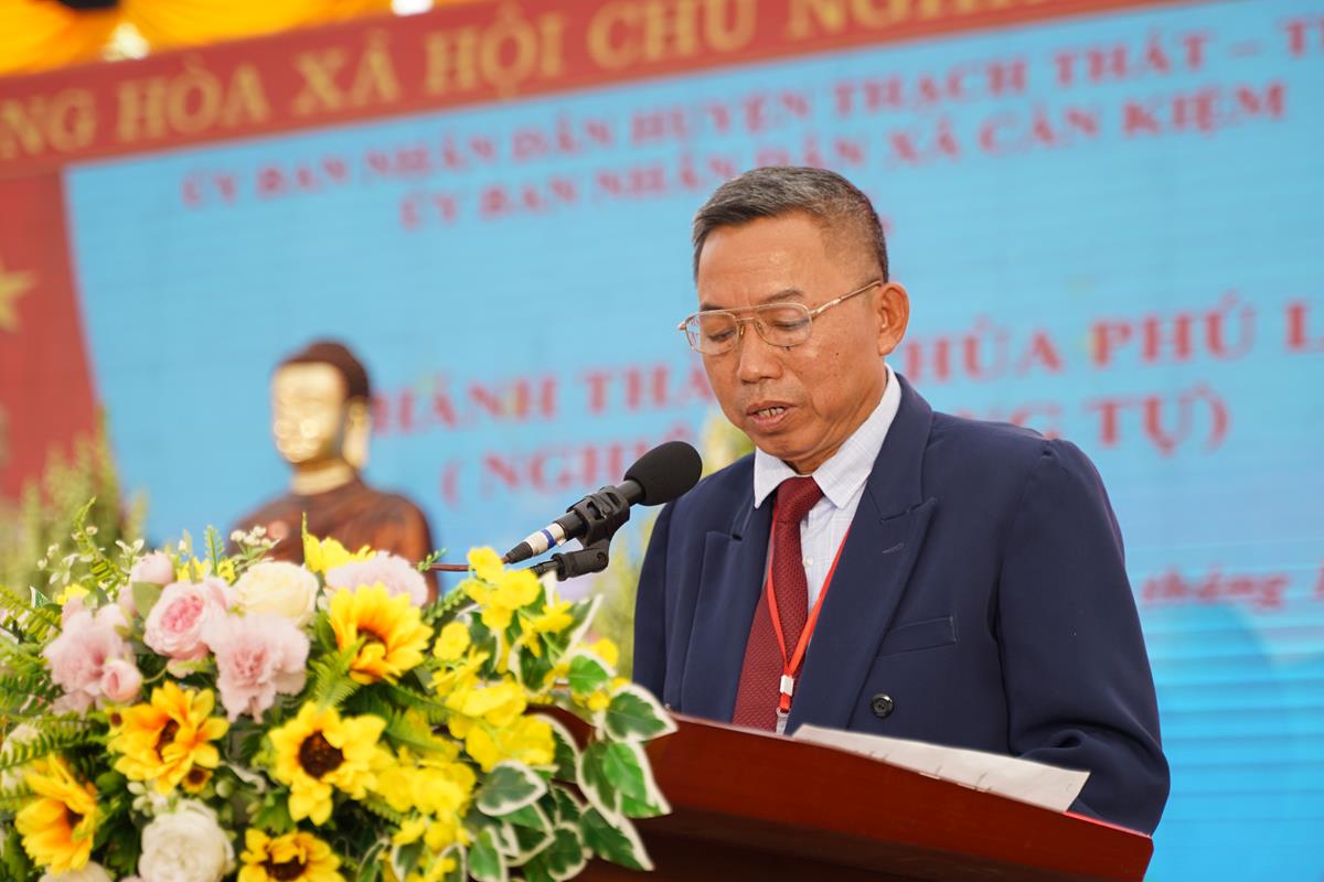 Ông Nguyễn Tuấn Trinh – Phó bí thư Đảng ủy, Chủ tịch UBND xã Cần Kiệm báo cáo sơ lược quá trình xây dựng chùa