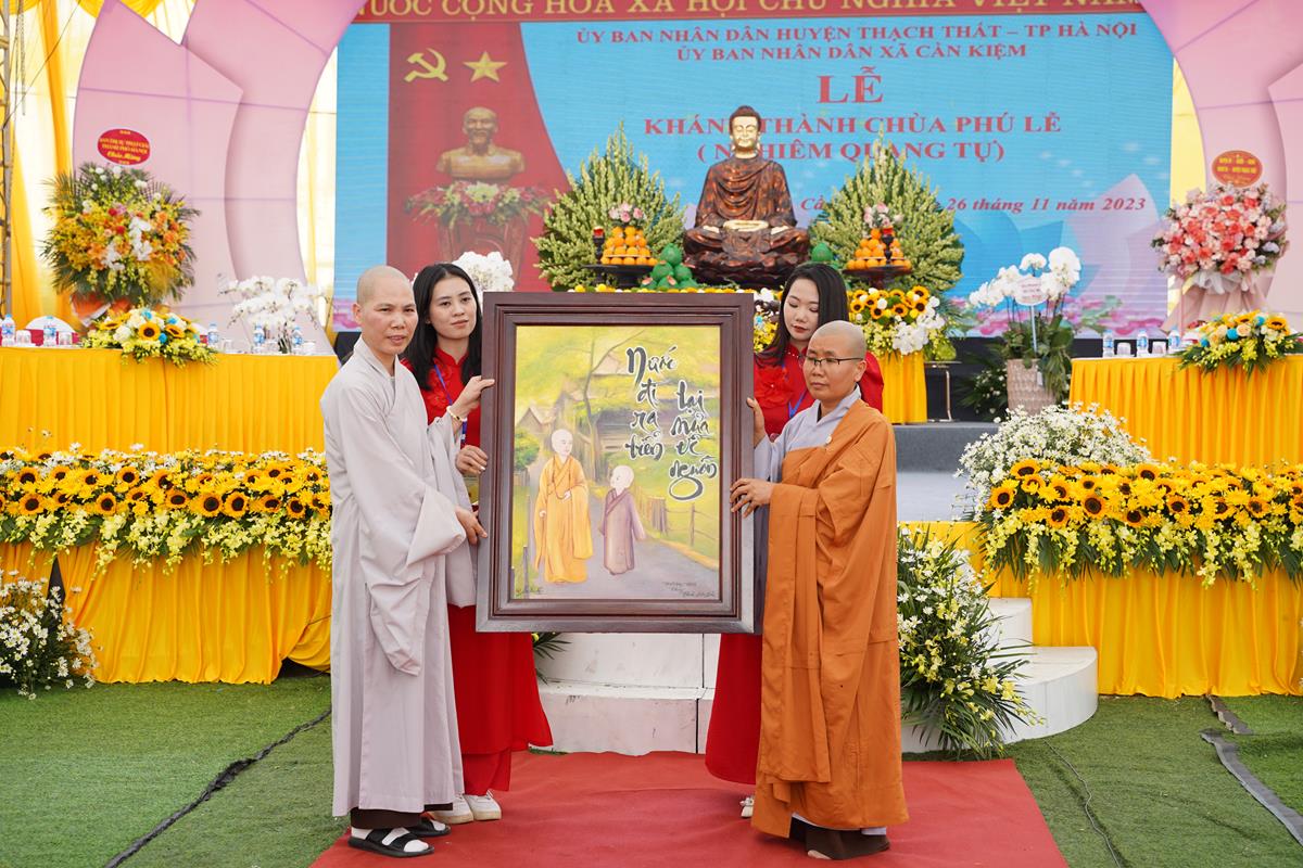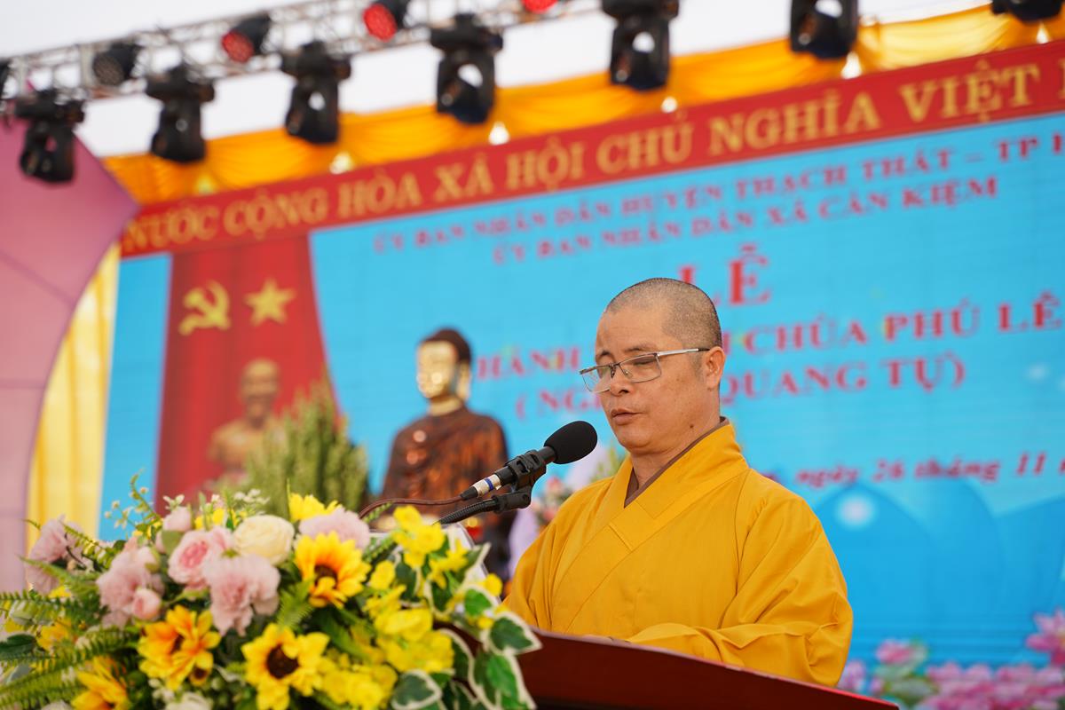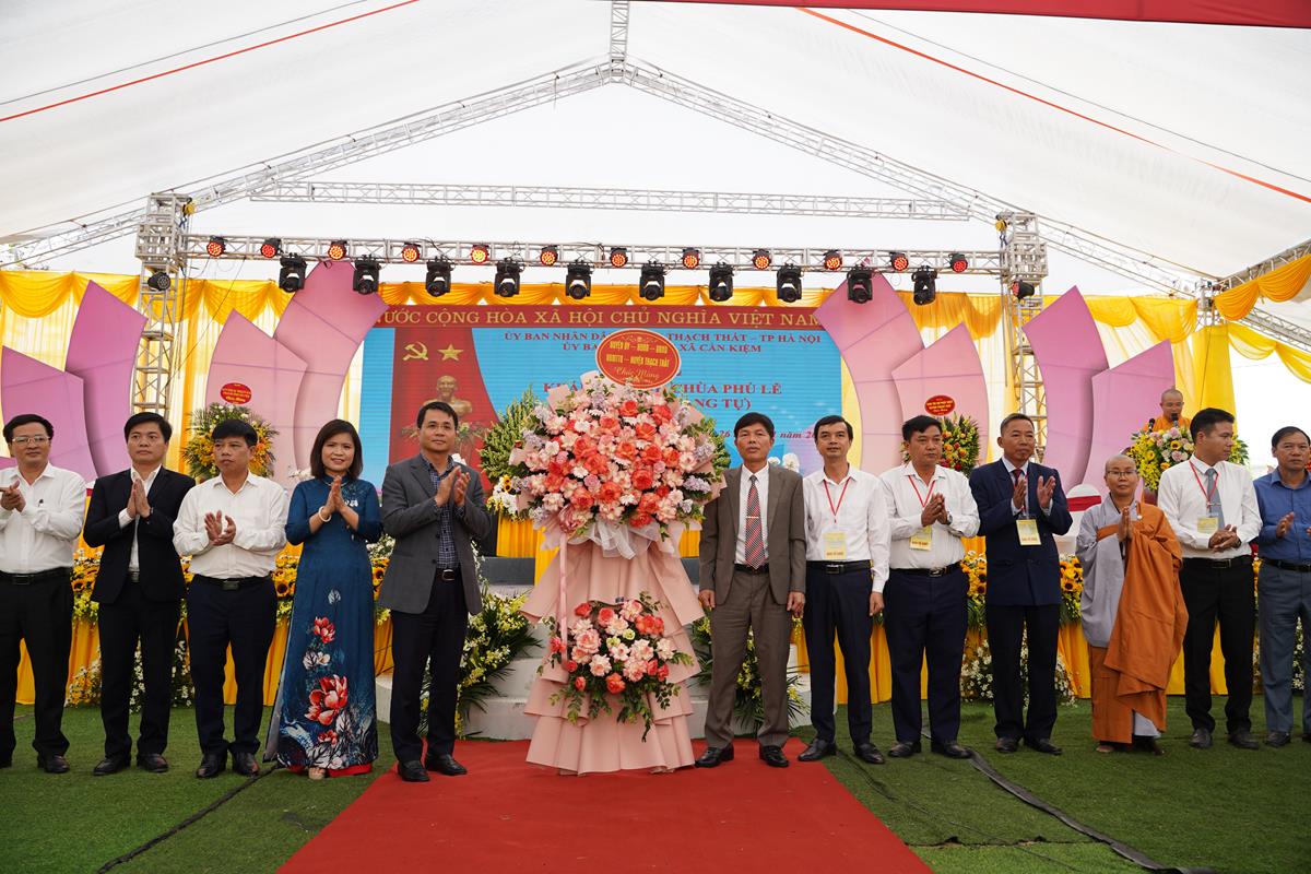 Bà Nguyễn Thị Bích Ngọc – Ủy viên Ban thường vụ Huyện ủy, Phó chủ tịch UBND huyện Thạch Thất đã đại diện cho Lãnh đạo chính quyền phát biểu đánh giá cao những đóng góp của cá nhân Sư cô Thích Thường An trong việc đẩy mạnh hoạt động Phật giáo trên địa bàn huyện theo đúng tinh thần “Đạo Pháp – Dân tộc – Chủ nghĩa xã hội”. Bà mong rằng Sư cô trụ trì cùng nhân dân Phật tử và chính quyền xã cùng thực hiện việc quản lý, bảo vệ và phát huy giá trị của di tích theo đúng quy định của Luật Di sản văn hóa; có kế hoạch bảo quản tốt các hiện vật, đồ thờ hiện còn lưu giữ tại di tích, thực hiện tốt công tác phòng cháy chữa cháy,…đồng thời hướng dẫn Phật tử tu học đúng chính pháp, làm những việc ích đạo lợi đời, đem lại giá trị tốt đẹp cho cộng đồng.