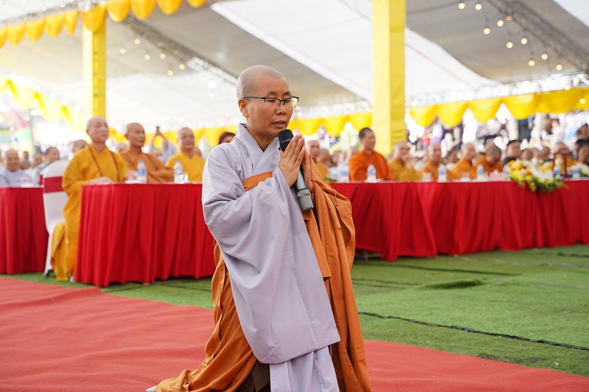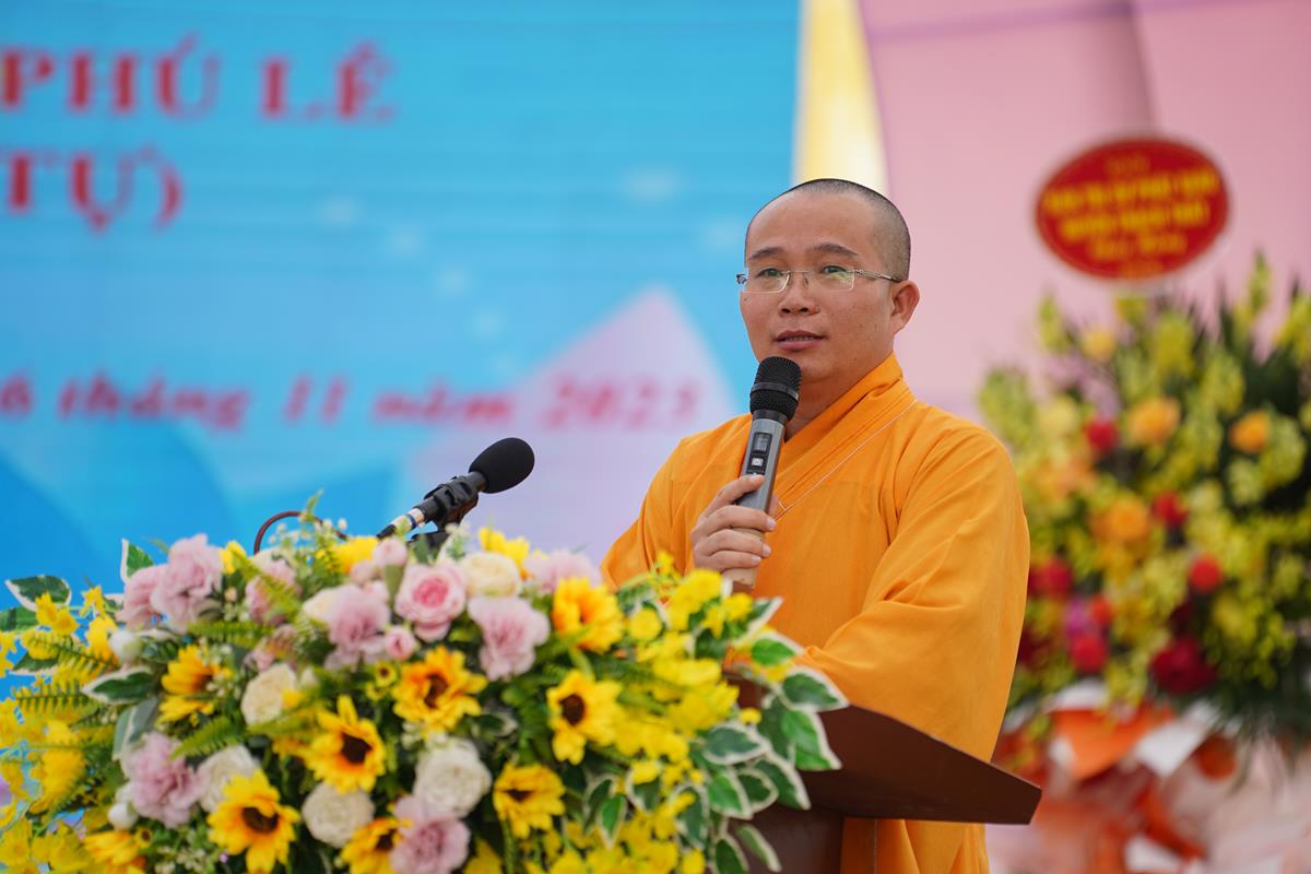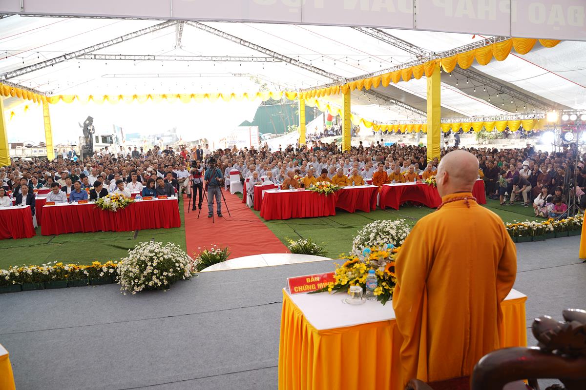 Ban đạo từ, Hòa thượng Thích Bảo Nghiêm đã nêu cao ý nghĩa của ngôi chùa trong đời sống người dân Việt từ xưa tới nay. Đặc biệt, trong buổi lễ ngày hôm nay còn diễn ra sự kiện đúc đại hồng chung. Theo Hòa thượng, tiếng chuông mang giá trị tâm linh sâu sắc, xua đi mọi nỗi khổ niềm đau, đưa con người trở về với tỉnh thức. Sau cùng, Hòa thượng sách tấn Sư cô tân trụ trì phải nhớ vai trò của Tu sĩ trong đời sống ngày nay, đó chính là “Thay Thế Tôn truyền bá đạo màu”, cần nhớ tới việc “Trụ đạo đức, Trì giáo hóa”, luôn lấy đạo đức và giới luật để làm tràng anh lạc trang nghiêm pháp thân, nối noi Thánh tử Kiều Đàm Di, cố gắng nỗ lực hoàn thành tốt trọng trách mà Giáo hội đã giao phó, coi nhân dân Phật tử là bồ đề quyến thuộc của mình, phát huy đời sống tâm linh trong cộng đồng, kết hợp với nhân dân và chính quyền làm tốt các công tác Phật sự tại địa phương, tiếp tục xây dựng ngôi Tam bảo ngày càng trang nghiêm tố hảo.