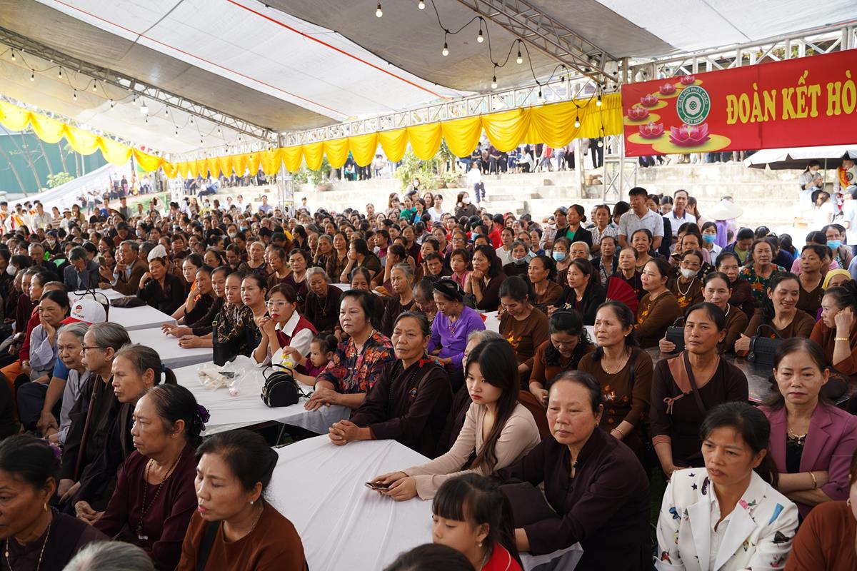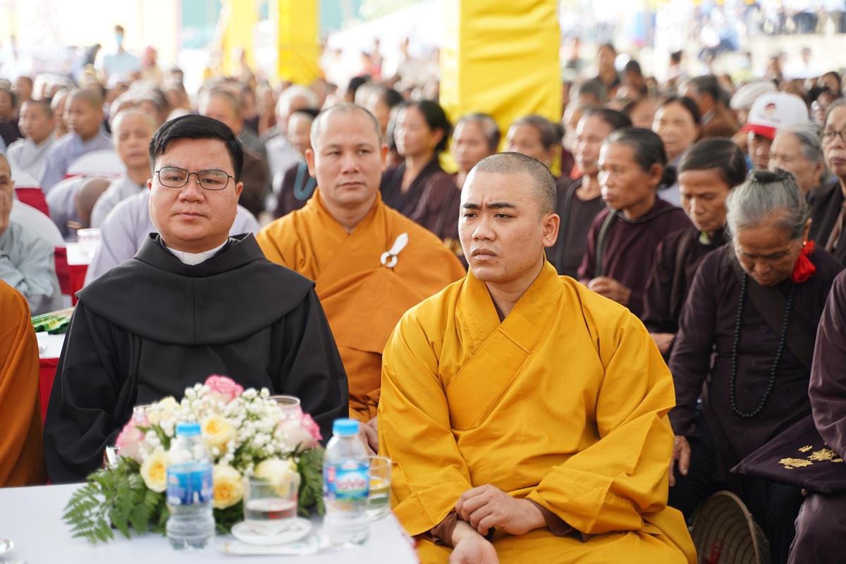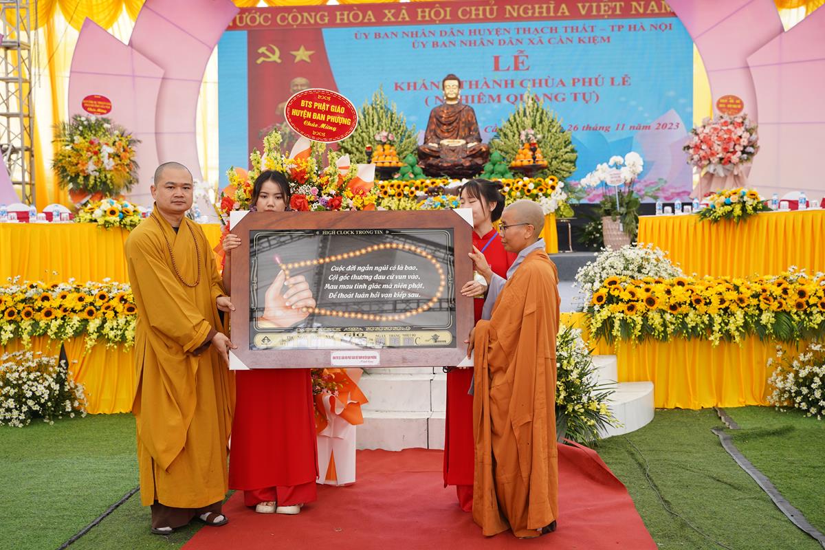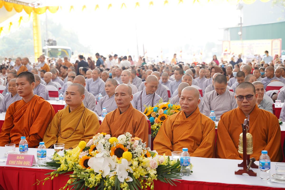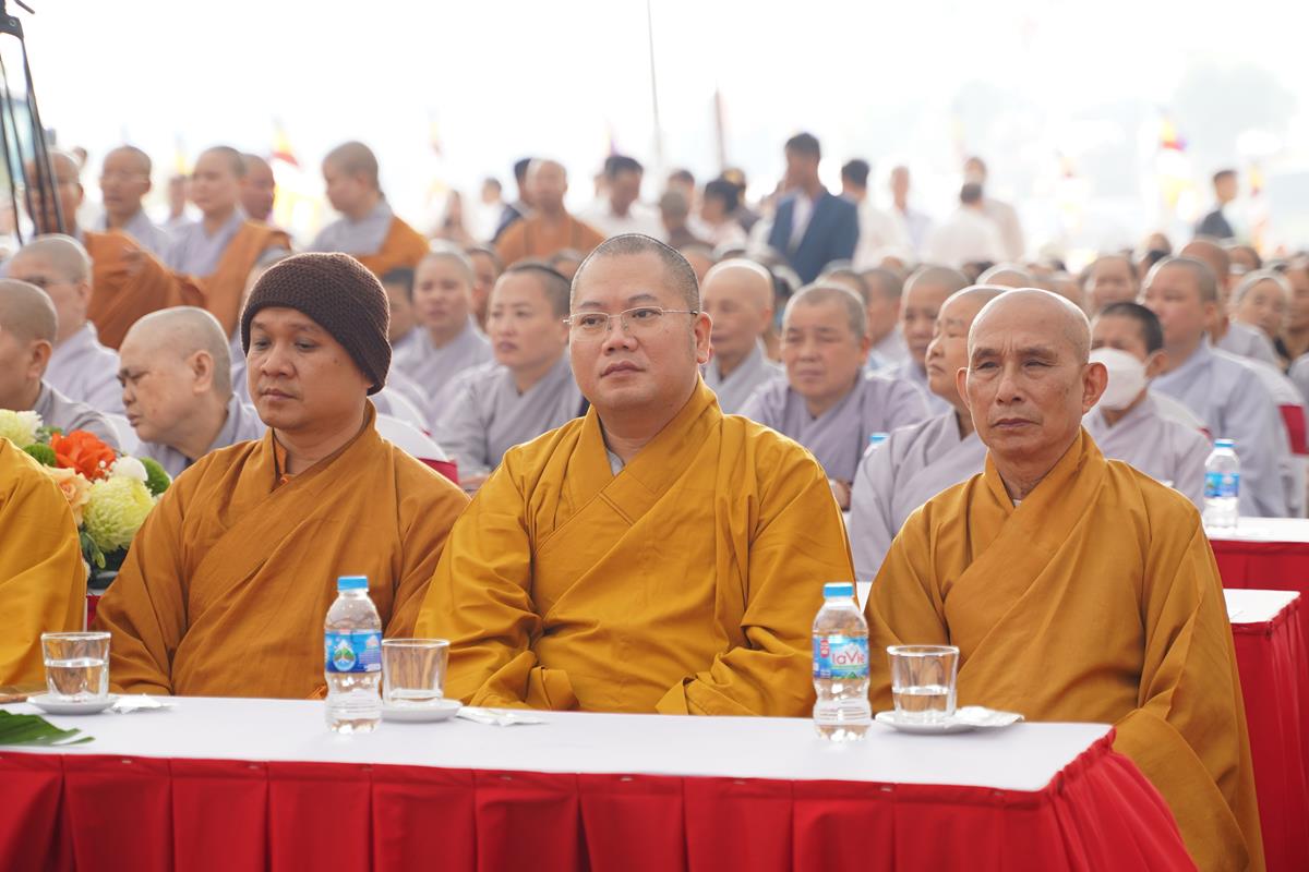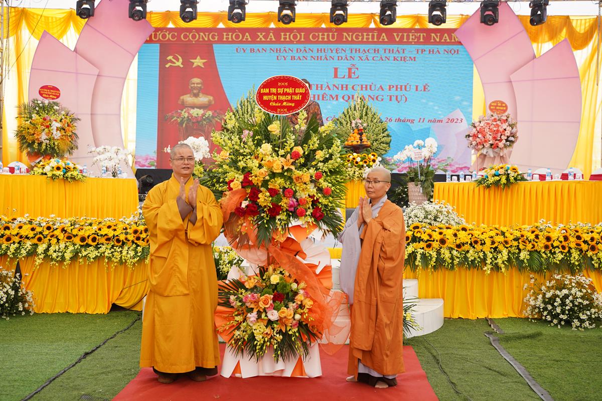 Chứng minh cho buổi lễ có Hòa thượng Thích Bảo Nghiêm – Phó chủ tịch HĐTS, Trưởng Ban Hoằng pháp TW, Trưởng BTS GHPGVN thành phố Hà Nội; Thượng tọa Thích Đạo Phong – Ủy viên HĐTS, Phó ban kiêm Chánh thư ký BTS GHPGVN thành phố Hà Nội; Thượng tọa Thích Thanh Hồi – Ủy viên BTS GHPGVN thành phố Hà Nội, Trưởng BTS GHPGVN huyện Thạch Thất; Đại đức Thích Thái Minh – Ủy viên BTS GHPGVN thành phố Hà Nội, Trưởng BTS GHPGVN huyện Đan Phượng, Chánh văn phòng trường Trung cấp Phật học Hà Nội cùng chư Tôn đức trụ trì các chùa, tự viện trong và ngoài huyện.