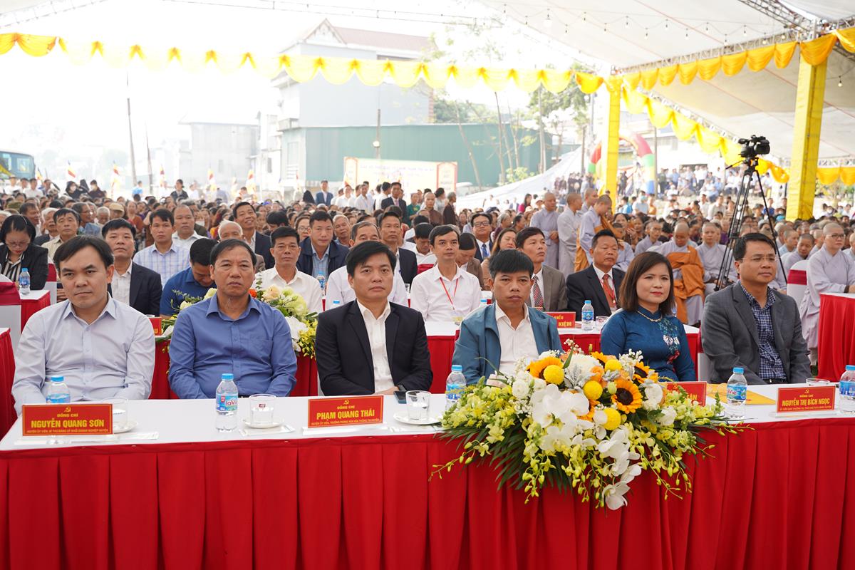 Về phía chính quyền có: ông Lê Minh Đức – Thành ủy viên, Bí thư huyện ủy huyện Thạch Thất; bà Nguyễn Thị Bích Ngọc – Ủy viên Ban thường vụ Huyện ủy, Phó chủ tịch UBND huyện Thạch Thất; ông Đặng Minh Tân – Ủy viên Ban thường vụ Huyện ủy, Trưởng Ban dân vận Huyện Thạch Thất và quý vị lãnh đạo đại diện cho các cơ quan chức năng, ban ngành sở tại cùng về tham dự.