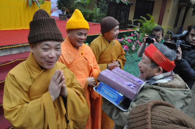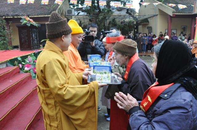 Nhân dịp này Hoà thượng Thích Bảo Nghiêm và Thượng toạ Thích Tấn Đạt tận tay trao quà chúc thọ cho các cụ thượng thượng thọ từ 90-95 tuổi trong không khí cảm động trang nghiêm và thanh tịnh.
