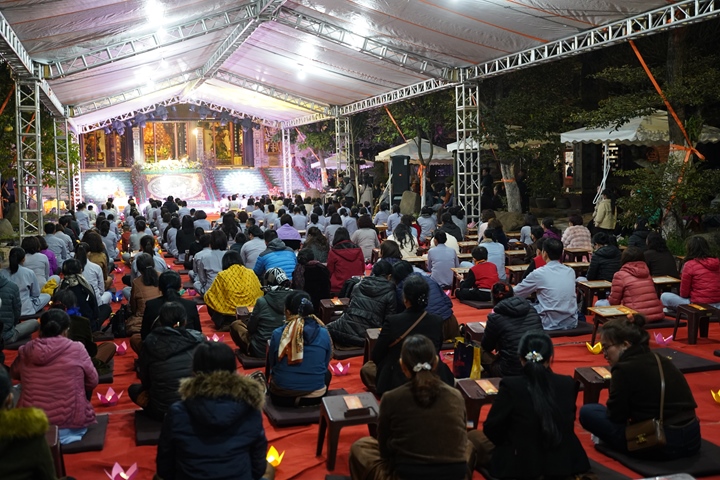 Sau đó, Hòa thượng Thích Bảo Nghiêm cùng chư Tăng Ni đã niêm hương bạch Phật nơi Đại Hùng Bảo Điện, và làm lễ truyền thọ Tam quy ngũ giới cho Phật tử. Gần 100 người có mặt tại lễ đường đều thành kính, nhất tâm nguyện thọ trì những lời Phật dạy, thực hiện giữ gìn 5 điều giới và 3 phép quy.