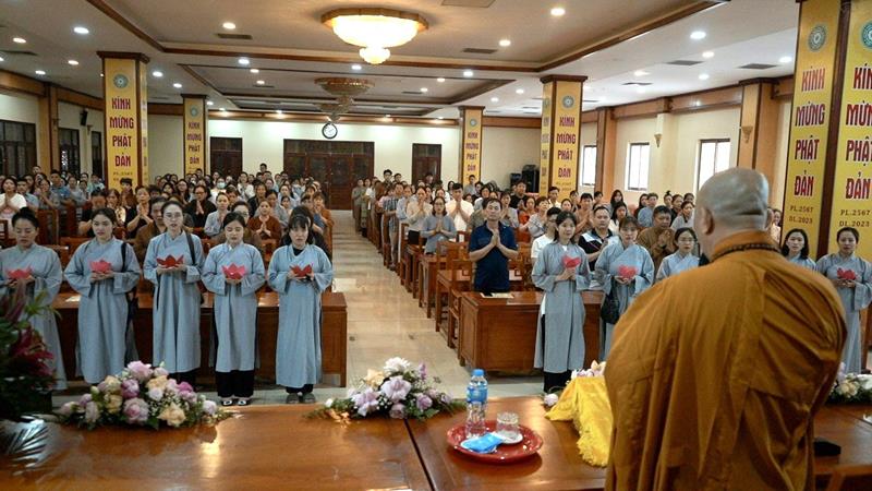 Tếp đó toàn thể đại chúng được nghe pháp thoại của Thượng tọa Thích Minh Tuân thuyết giảng về ý nghĩa Quy y Tam bảo, đại chúng cùng phát nguyện trở thành người Phật tử giữ trọn đời 5 giới: Không giết hại, không trộm cắp, không tà dâm, không nói dối , không sử dụng ma túy và rượu. Đó cũng là điều được khẳng định một công dân có đạo đức tốt, giúp ích cho xã hội an bình. Buổi lễ diễn ra trong không khí trang nghiêm hoan hỉ tràn đầy Đạo vị.
