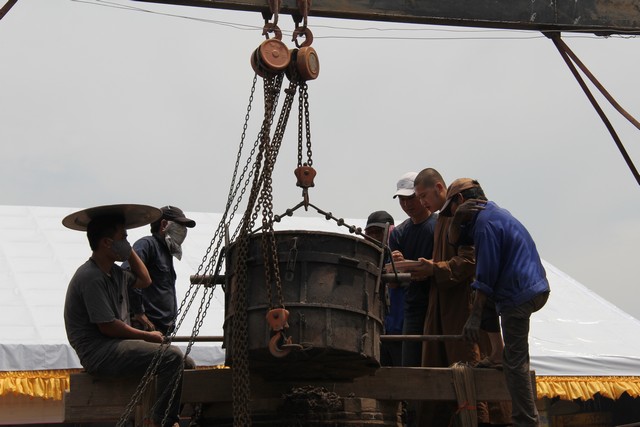 Chuông nặng 1 tấn rưỡi, cao 2m3 đường kính 1m2 do Làng nghề đúc đồng Ngũ Xã – Hà Nội thực hiện, Đại lễ rót Đại hồng chung hôm nay là một trong những hoạt động nhằm bảo tồn, tôn tạo các giá trị văn hóa nghệ thuật của dân tộc và phát huy giá trị văn hóa của khu di tích chùa Keo . Đặc biệt là sự kế thừa tinh hoa nghệ thuật đúc Chuông cổ truyền kết hợp với đúc Chuông hiện đại, để bảo tồn tôn vinh các giá trị văn hóa Phật giáo.